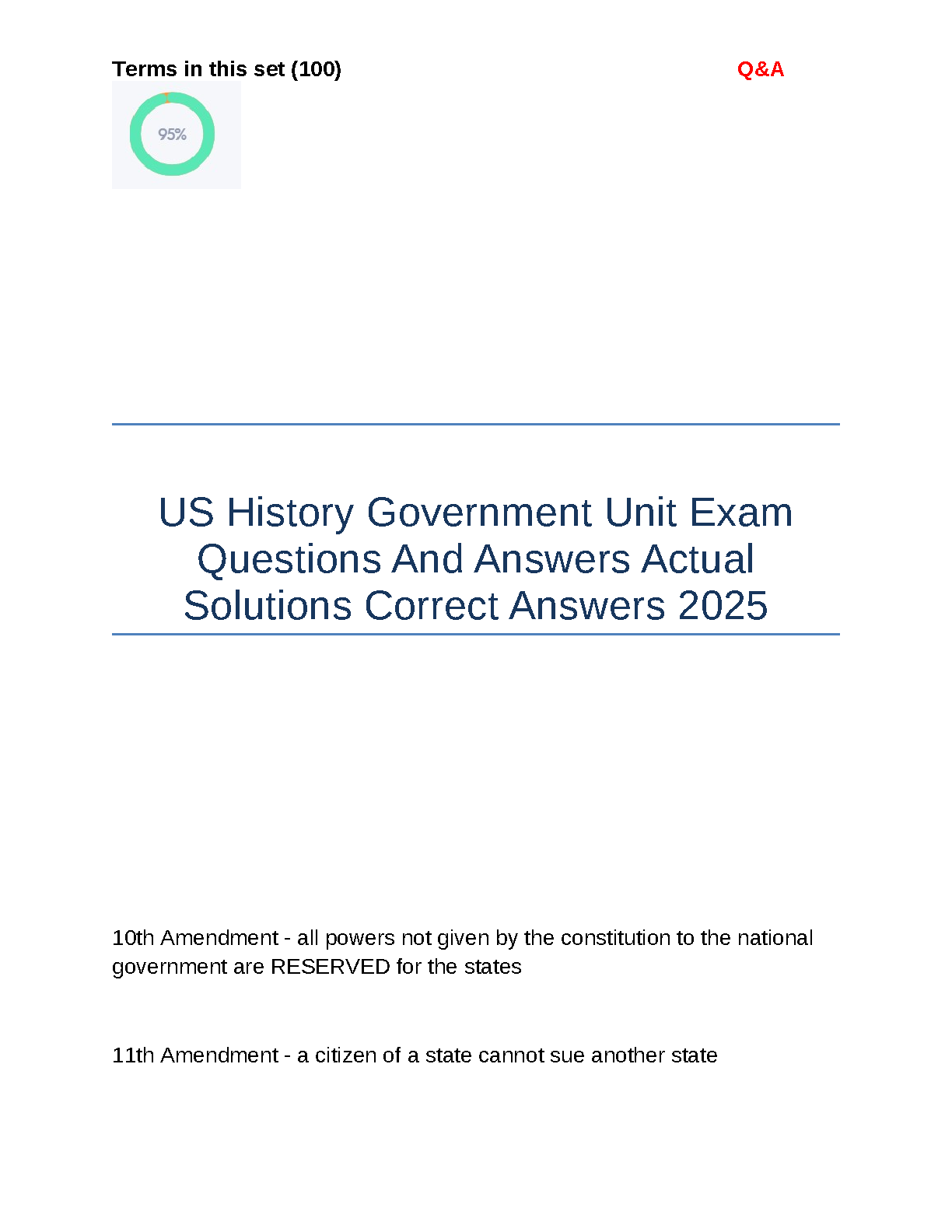 US History Government Unit Exam Questions and Answers 2025 Edition by Unknown Author