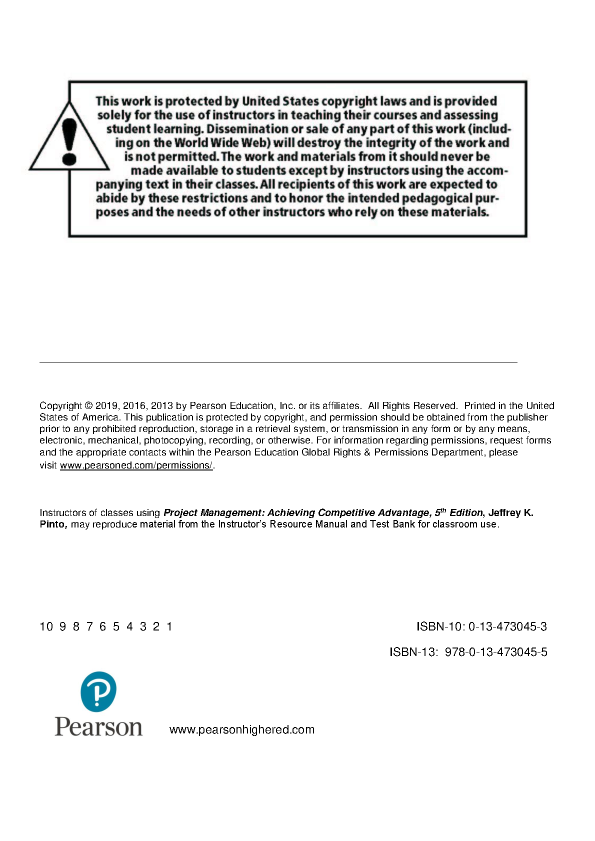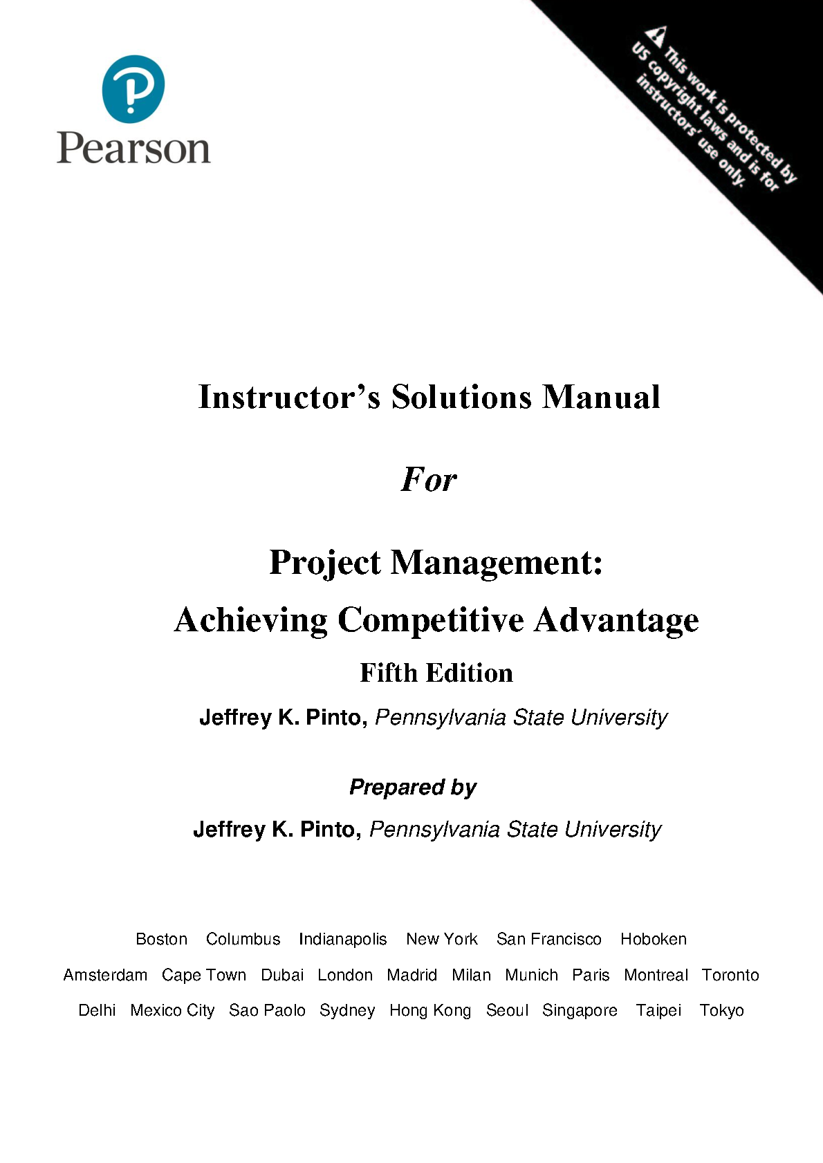 Project Management: Achieving Competitive Advantage, Fifth Edition Instructor's Solutions Manual by Jeffrey K. Pinto