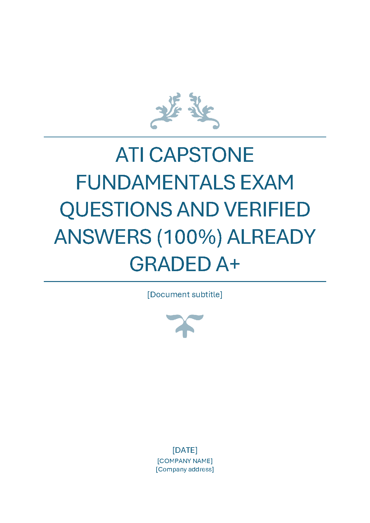 Ace your ATI Capstone Fundamentals Exam with this comprehensive study guide. 100% verified answers, already graded A+. Perfect for first-time exam takers to avoid resits. 2024-2025 edition.