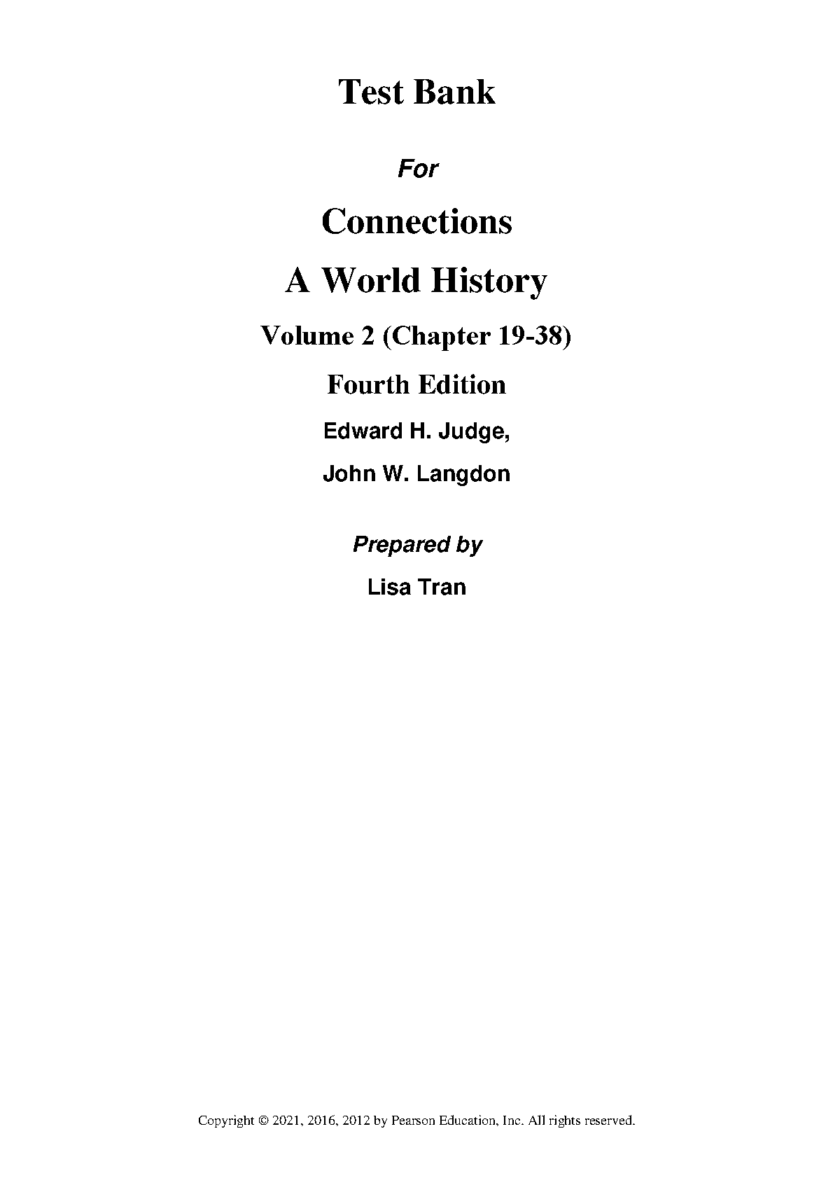 Test Bank for Connections: A World History, Volume 2 (Chapters 19-38), Fourth Edition by Edward H. Judge and John W. Langdon