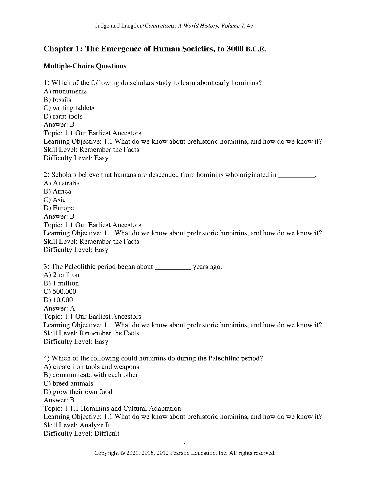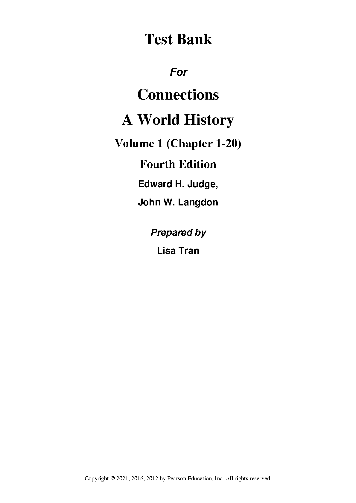 Test Bank for Connections: A World History, Volume 1 (Chapters 1-20), Fourth Edition by Edward H. Judge and John W. Langdon