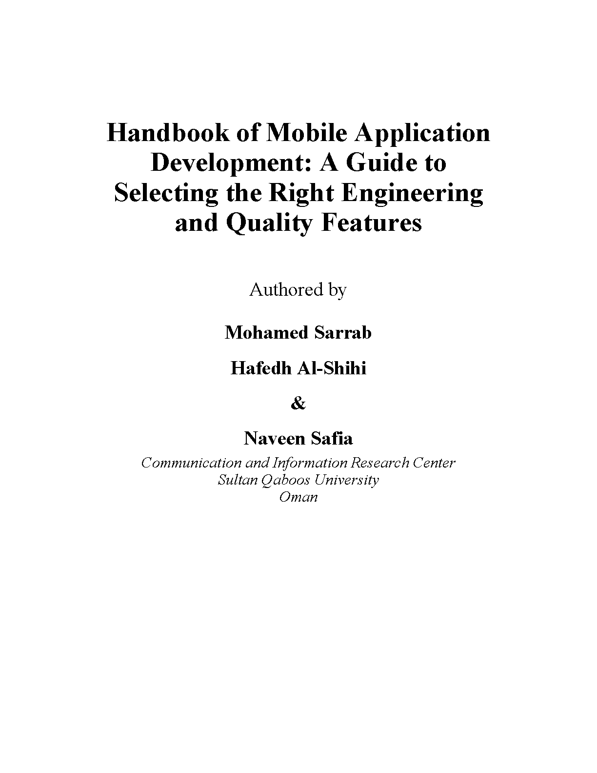 Handbook of Mobile Application Development: A Guide to Selecting the Right Engineering and Quality Features by Mohamed Sarrab, Hafedh Al-Shihi, and Naveen Safia