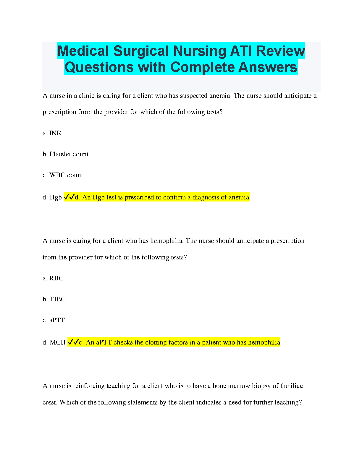 Medical Surgical Nursing ATI Review Questions with Complete Answers COMPLETE SOLUTION RATED A+. DOWNLOAD on www.hackedexams.com INSTANTLY.
