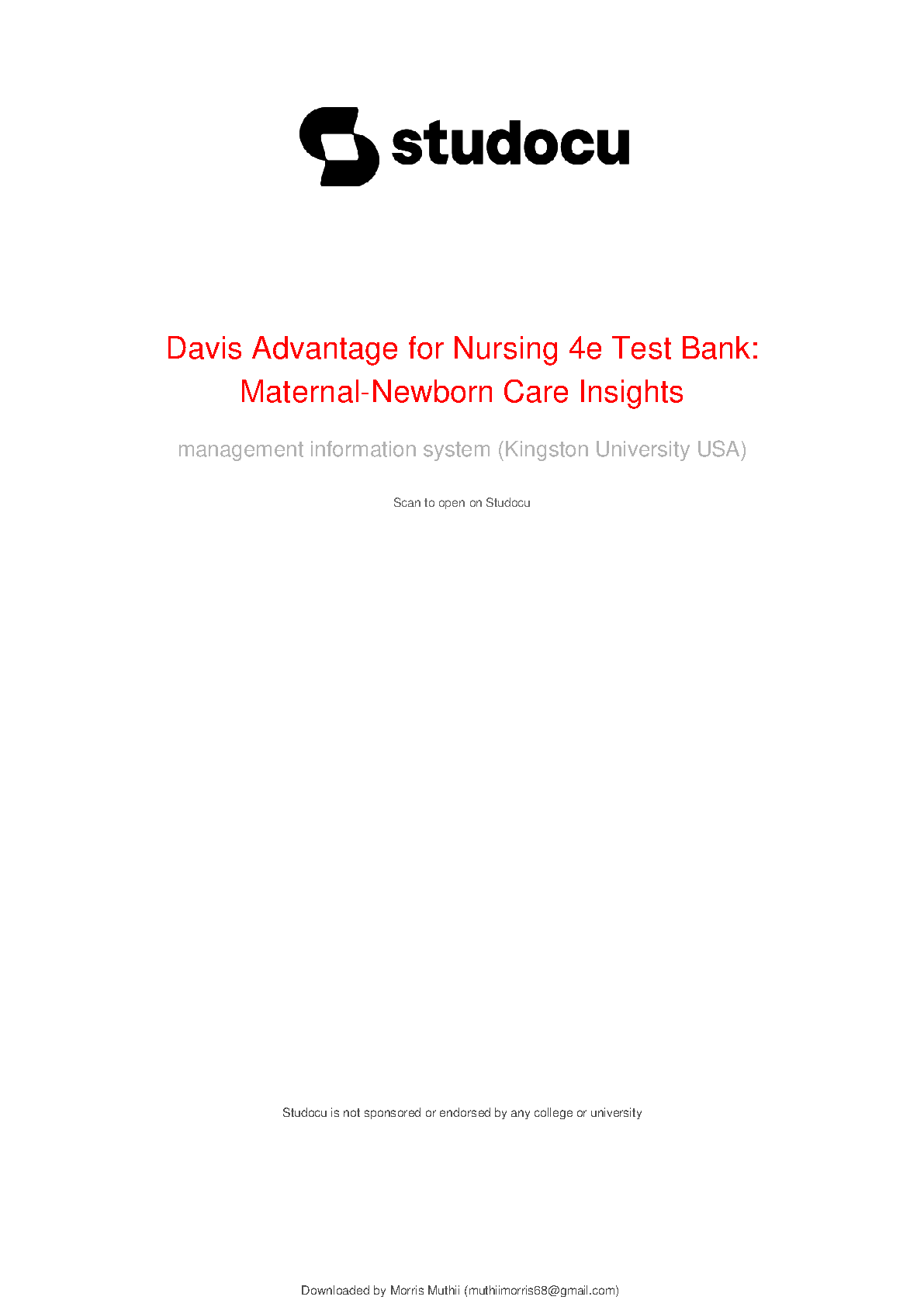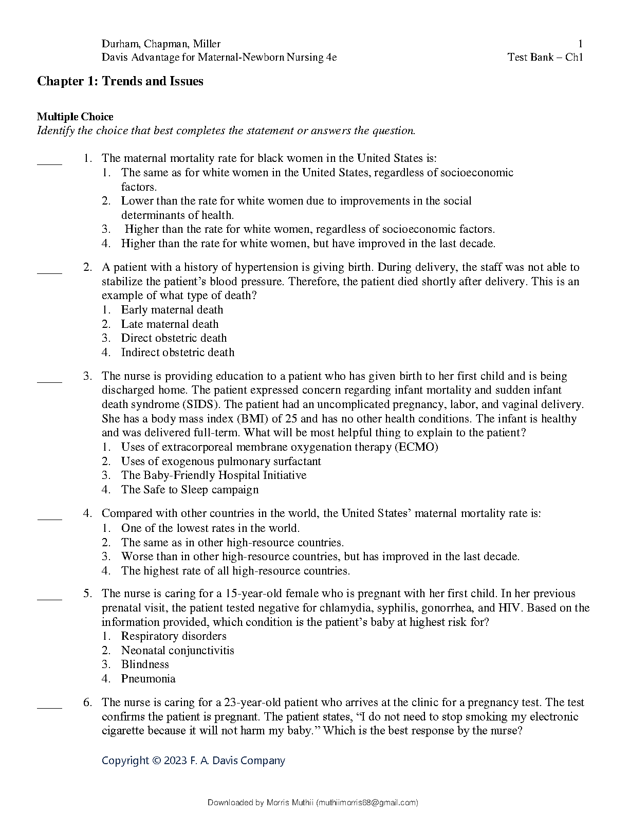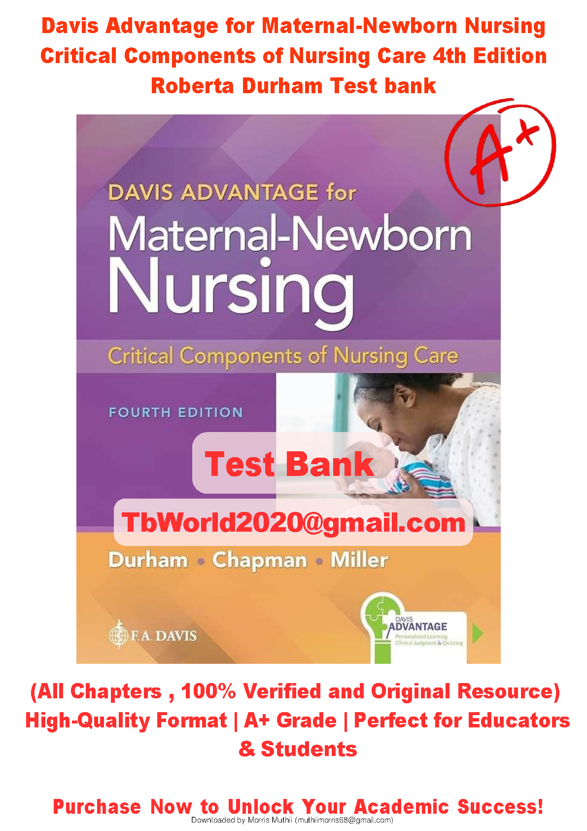 Davis Advantage for Nursing 4e Test Bank: Maternal-Newborn Care Insights by Marilyn J. Hockenberry, David Wilson, and others