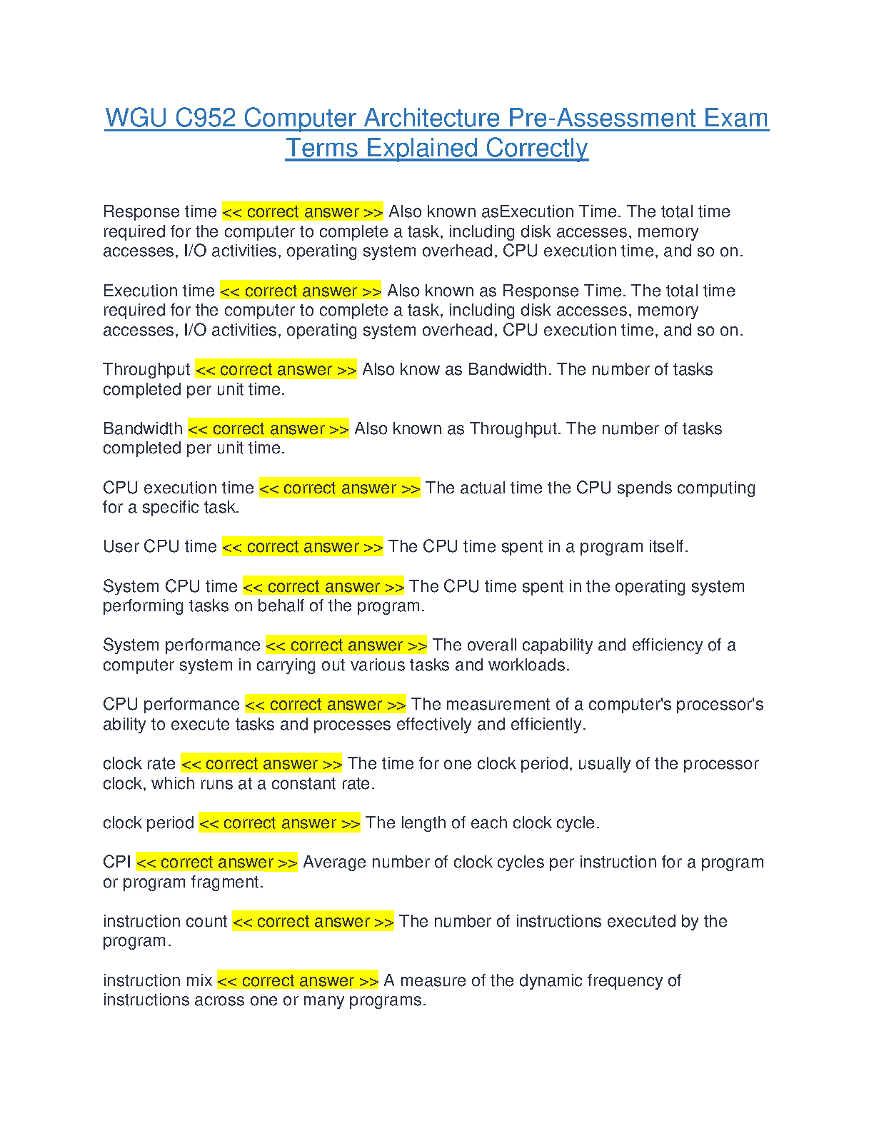 WGU C952 Computer Architecture Pre-Assessment Exam: Terms Explained Correctly for 2024/2025 Academic Year