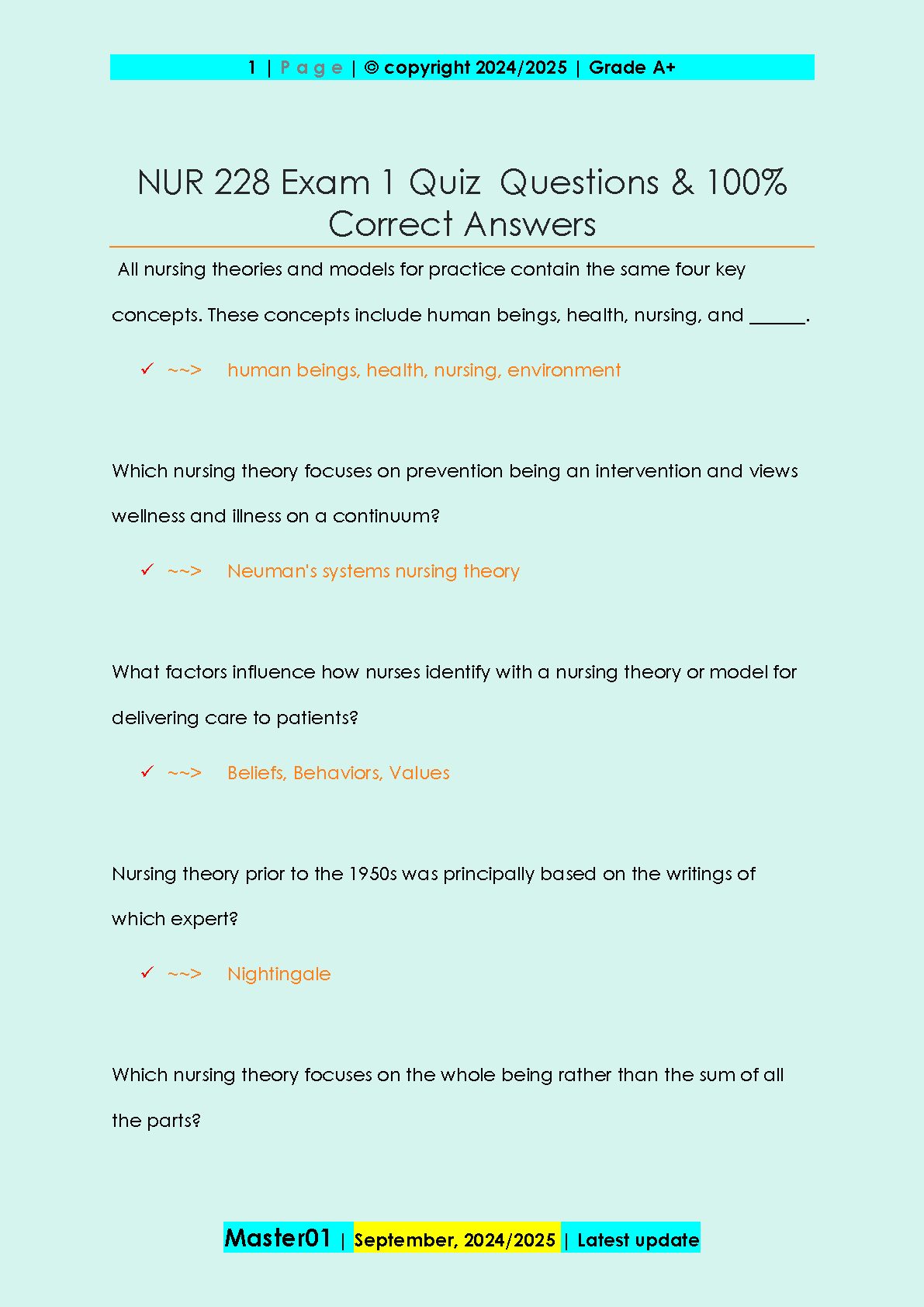 Ace your NUR 228 exam on the first try with this comprehensive study guide. This 2024-2025 edition provides 100% correct answers to key exam questions, ensuring you avoid costly resits. Master essential nursing theories and concepts for a thorough understanding.