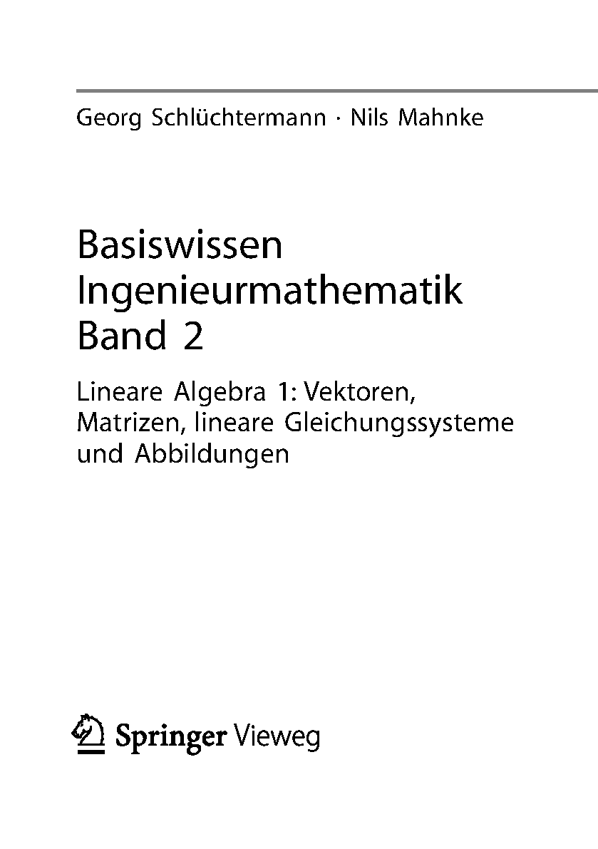 Basiswissen Ingenieurmathematik Band 2 by Georg Schlüchtermann and Nils Mahnke: A Comprehensive Guide to Linear Algebra for Engineering Students