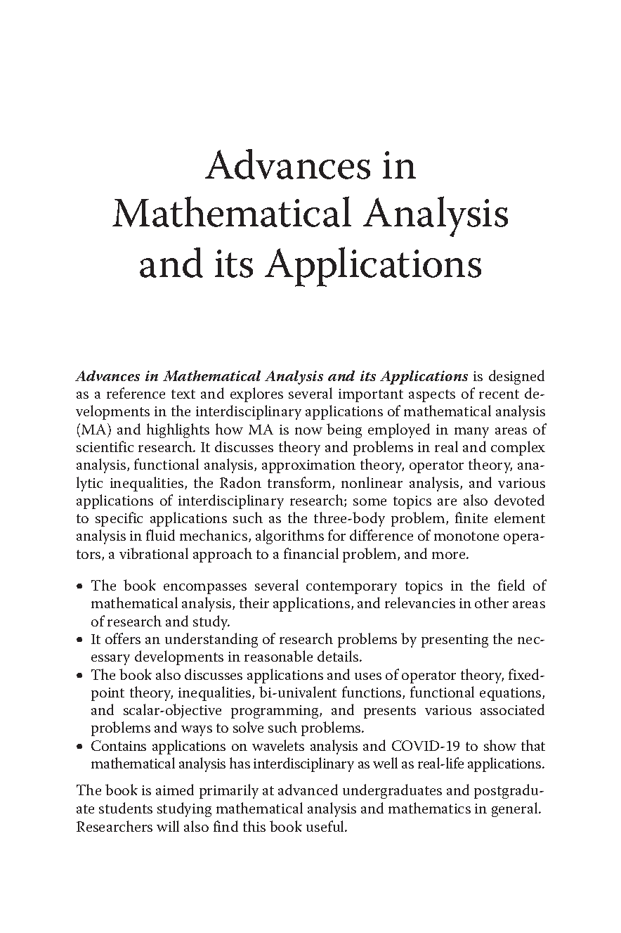 This 1st edition of "Advances in Mathematical Analysis and Its Applications," edited by Bipanan Hazarika, Santanu Charjee, and H.M. Srivastava, offers a comprehensive exploration of mathematical analysis and its diverse applications. Ideal for students seeking to master the subject and excel in their exams on the first attempt.