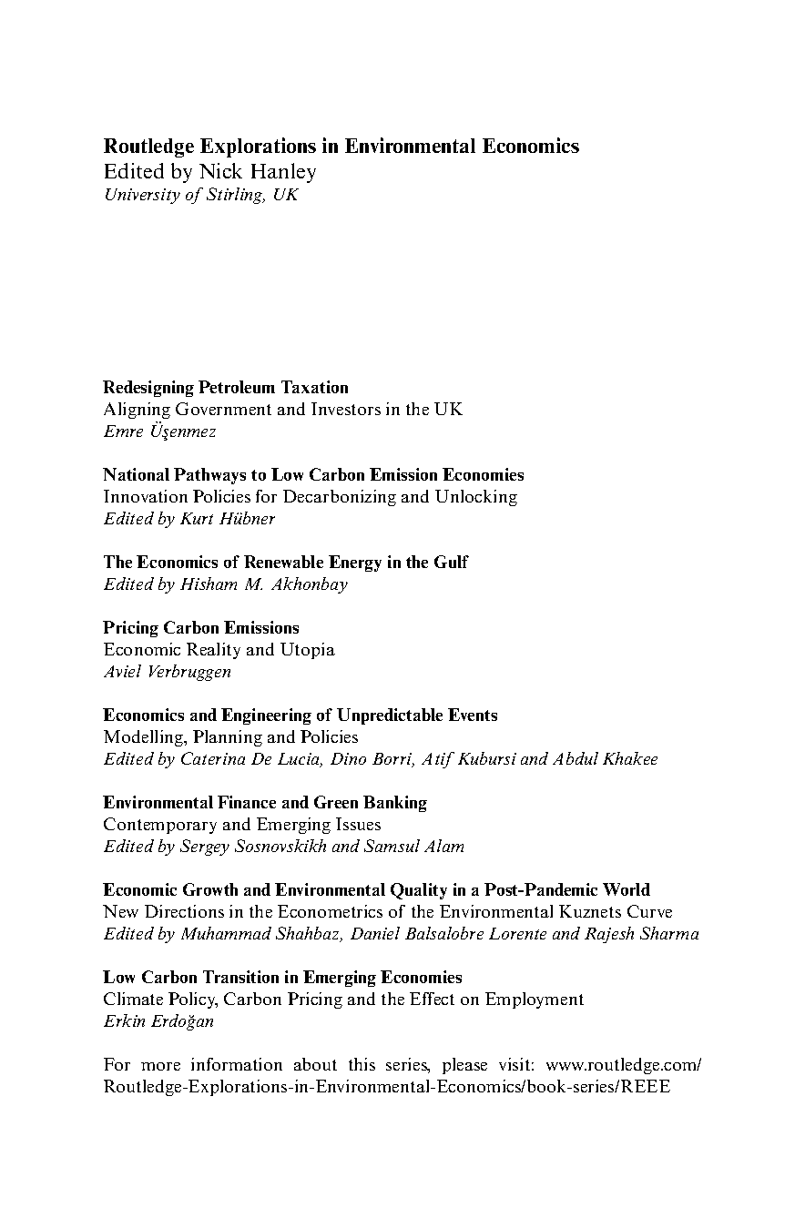 Low Carbon Transition in Emerging Economies: Climate Policy, Carbon Pricing, and the Effect on Employment by Erkin Erdoğan (Routledge Explorations in Environmental Economics)