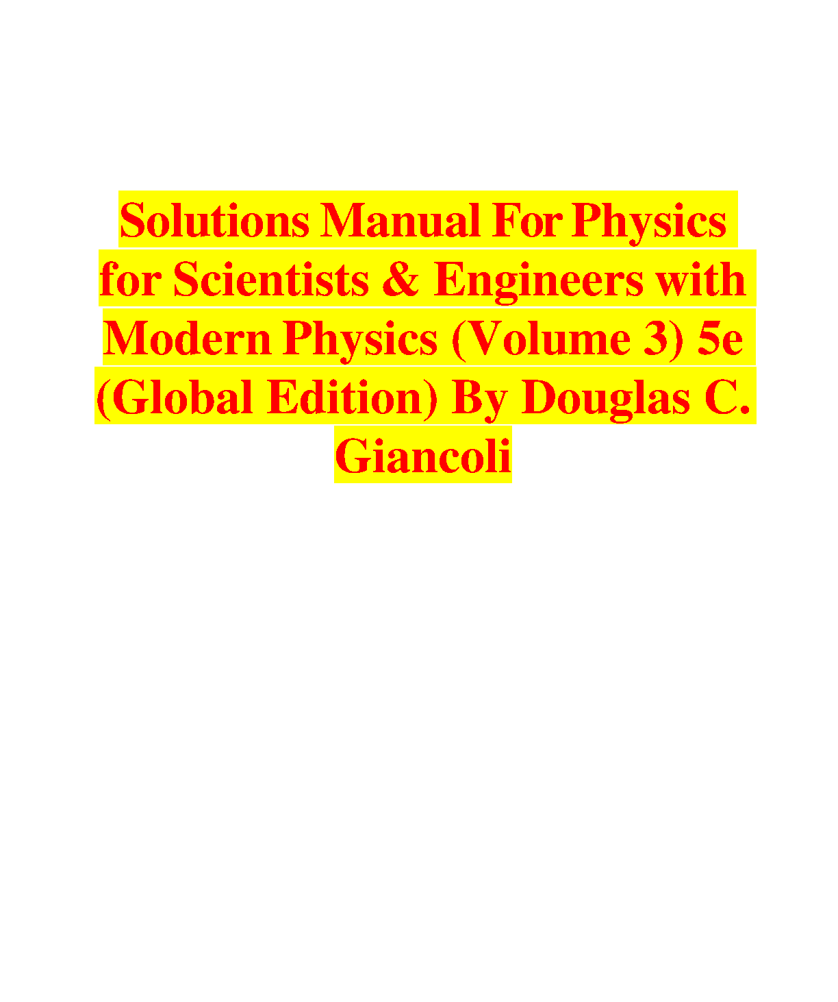 Ace your Physics course with this comprehensive solutions manual. This resource provides detailed solutions to all problems in the 5th edition, Global Edition of Douglas C. Giancoli's "Physics for Scientists and Engineers with Modern Physics (Volume 3)." Gain a deeper understanding of the concepts and master problem-solving techniques to achieve exam success.