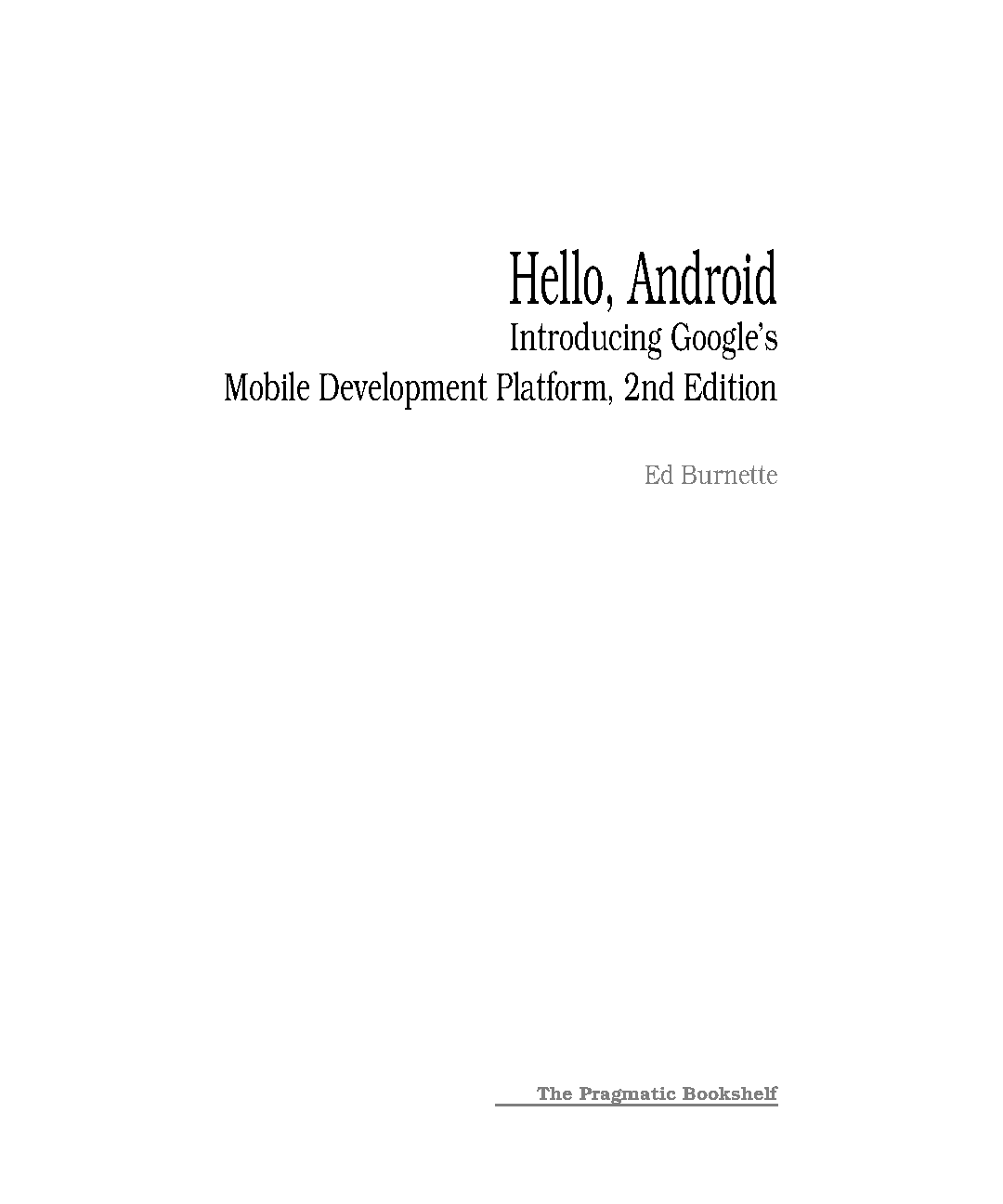 Hello, Android: Introducing Google's Mobile Development Platform, Second Edition by Ed Burnette and Susannah Davidson Pfalzer