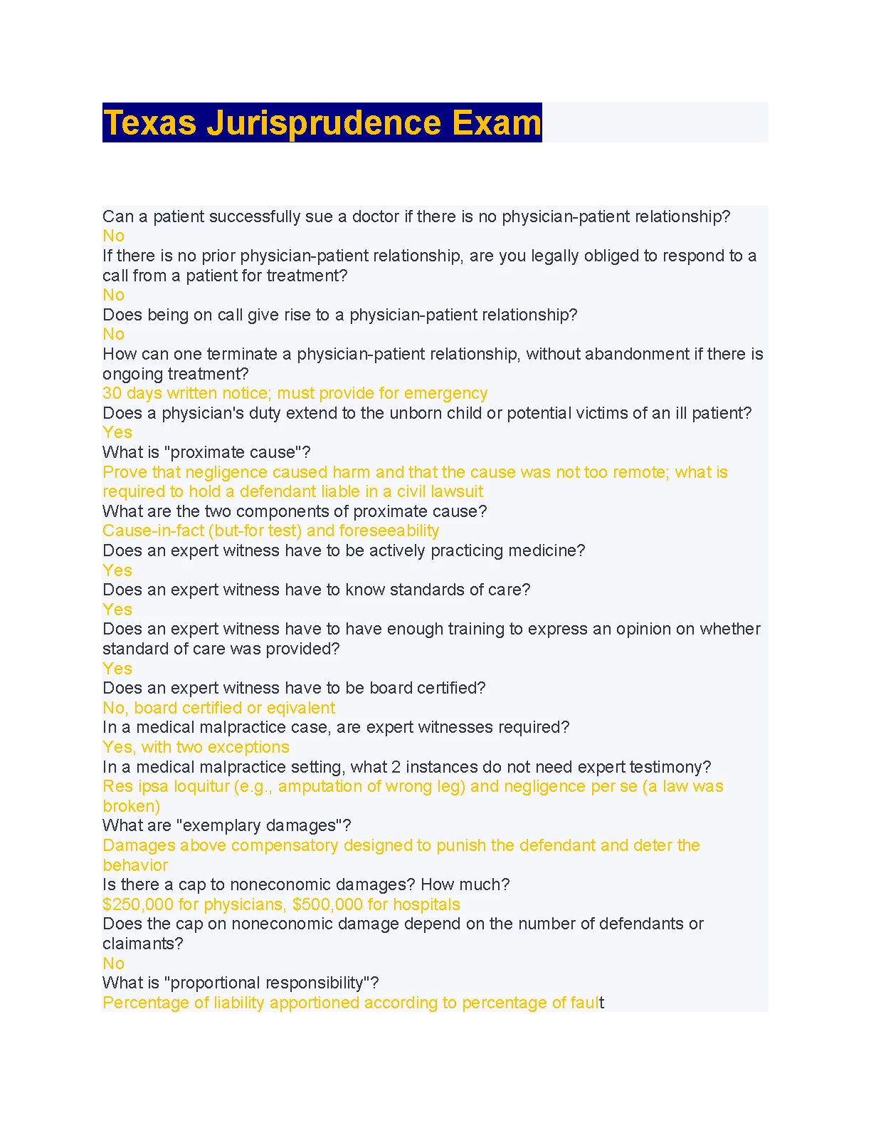 Texas Jurisprudence Exam BEST RATED SOLUTION FOR 2023/2024. DOWNLOAD on www.hackedexams.com INSTANTLY.