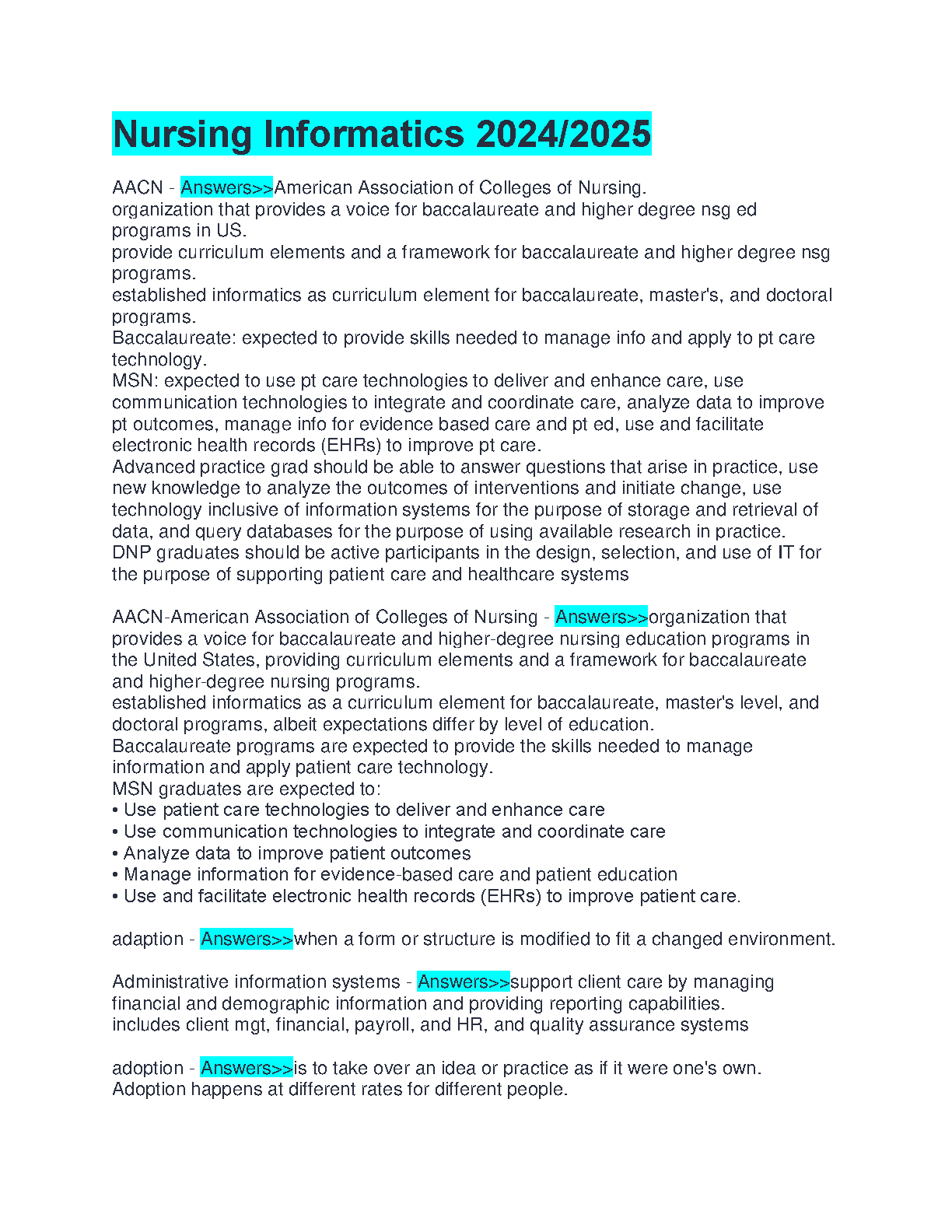 Master Nursing Informatics with this essential guide designed for the 2024-2025 academic year. Ace your exams on the first attempt and avoid resits with its clear explanations and practical examples.