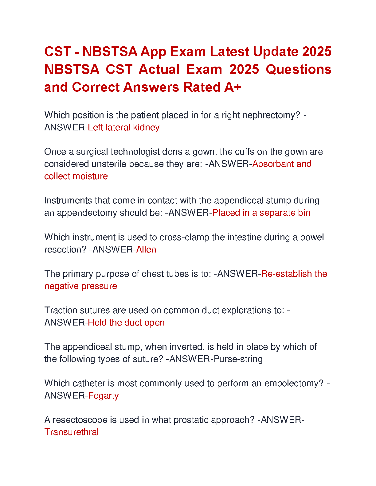 2025 NBSTSA CST Exam: Actual Questions and Answers by [Author Names not found]