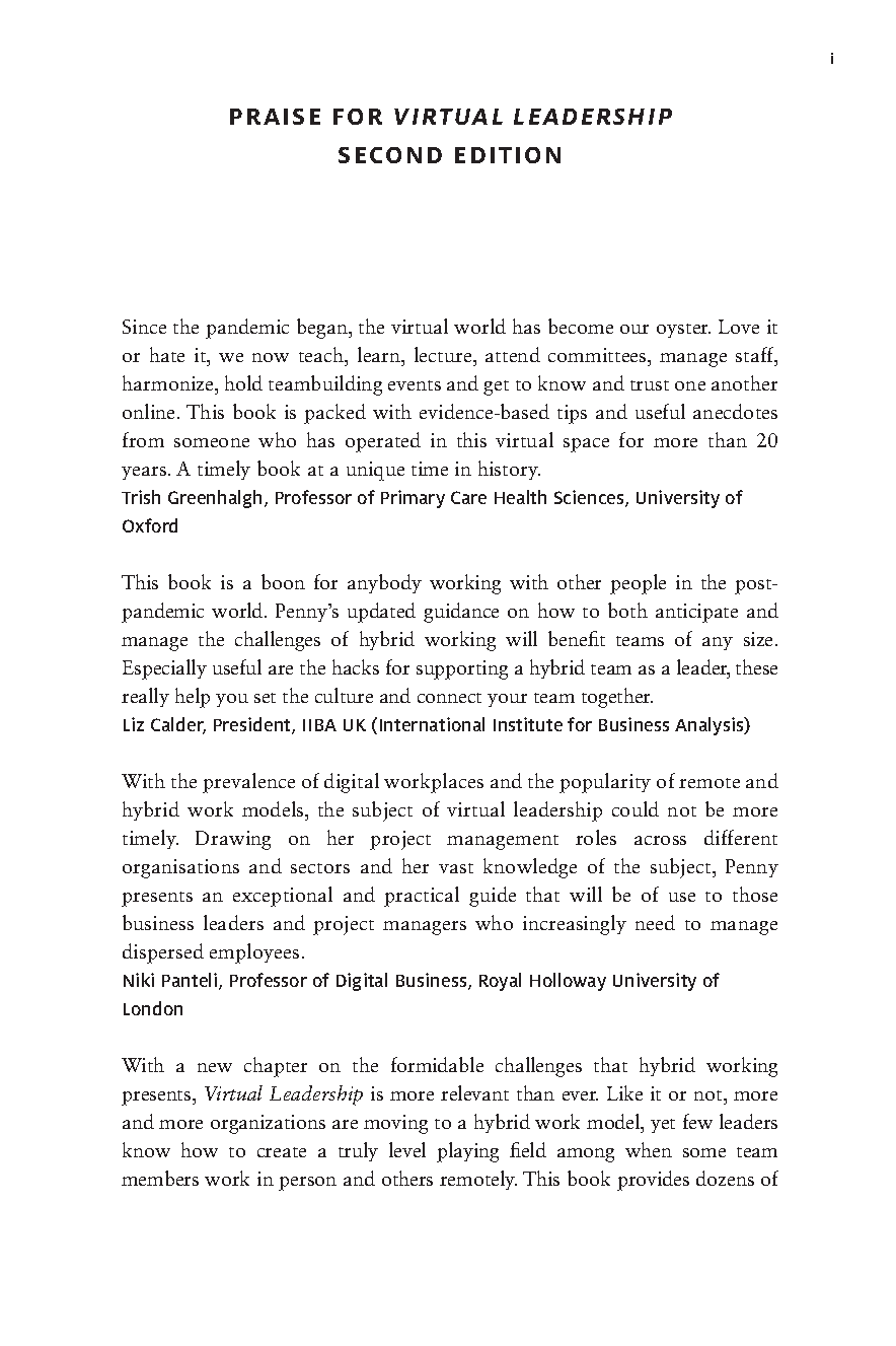 Master the art of virtual leadership with this updated 2nd edition guide. Penny Pullan provides practical strategies for success in remote or hybrid work environments, helping you build high-performing teams and achieve outstanding results. Perfect for managers and leaders navigating the complexities of modern work.