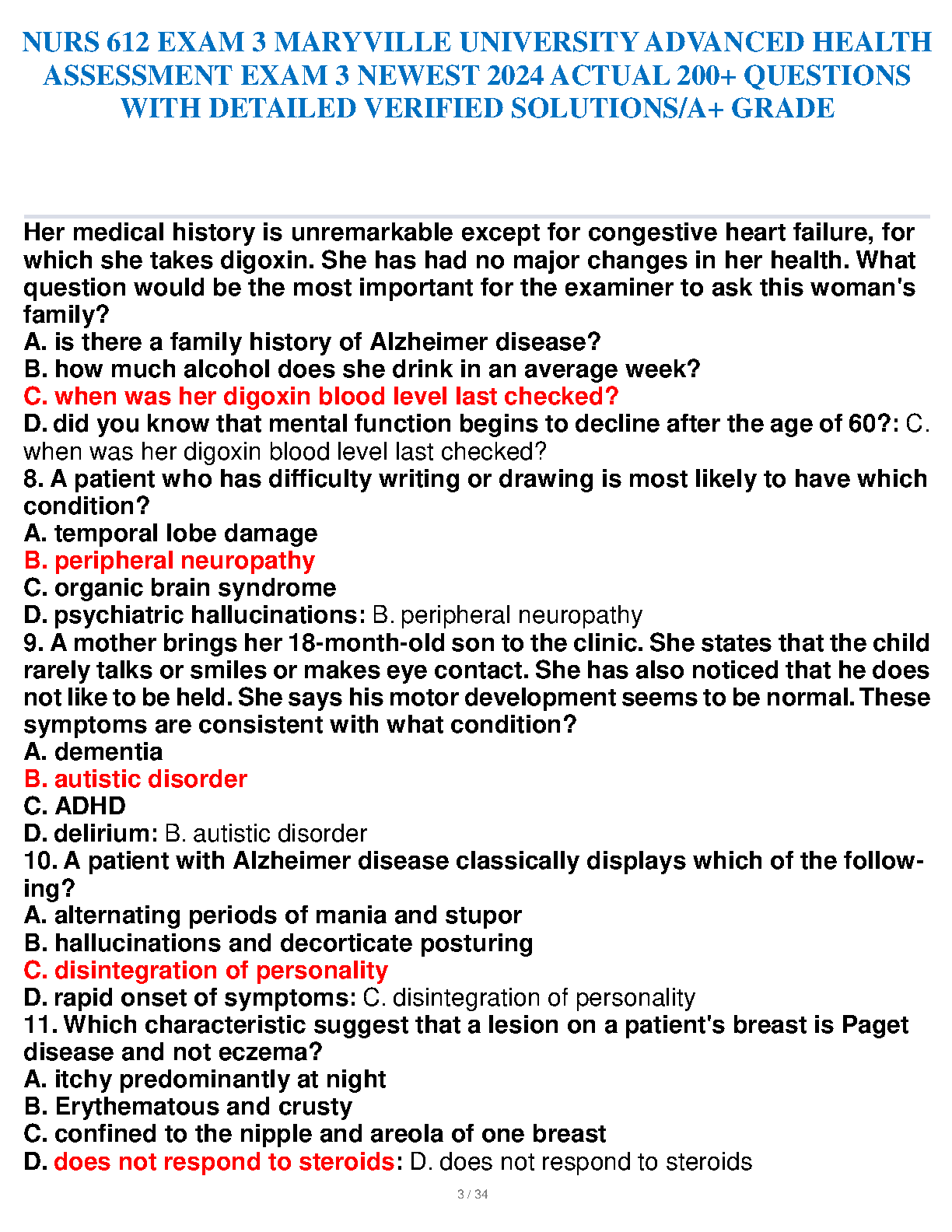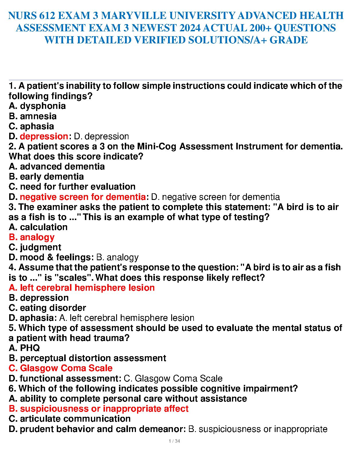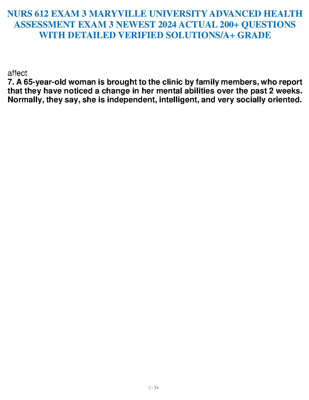 Ace your NURS 612 exam with this comprehensive study guide featuring 200+ actual questions and detailed, verified solutions. Guaranteed to help you pass on your first attempt. Perfect for Maryville University students.