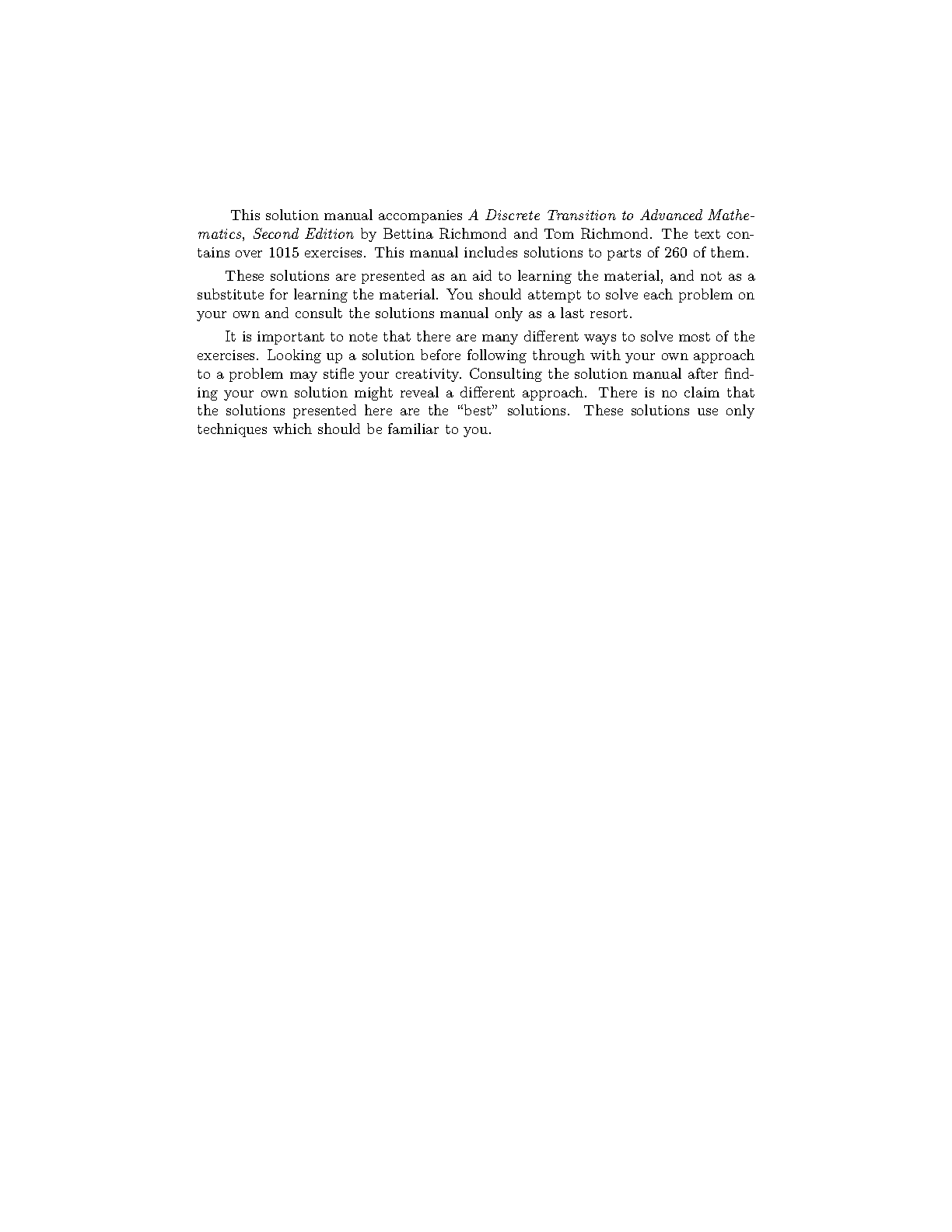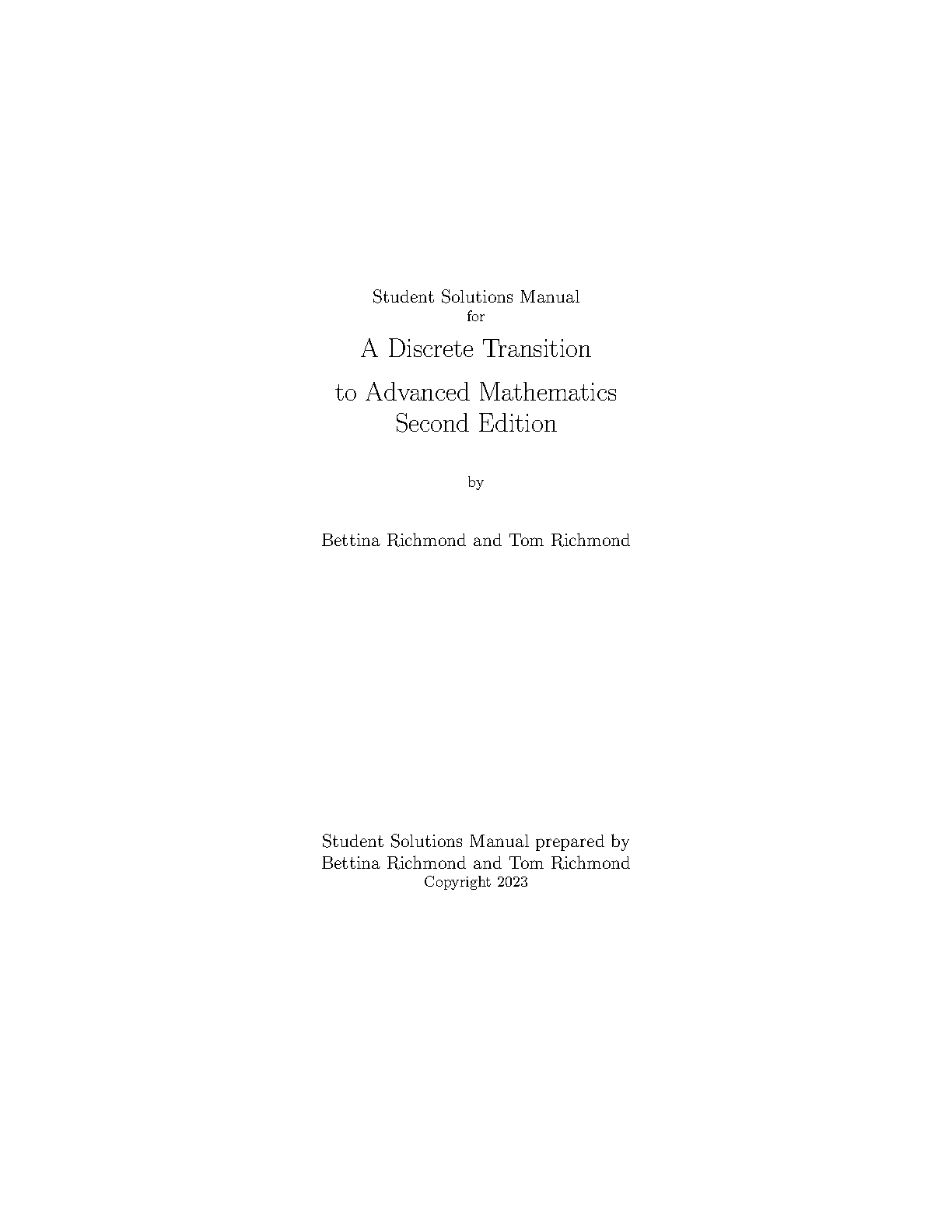 A Discrete Transition to Advanced Mathematics: Second Edition Student Solutions Manual by Bettina Richmond and Thomas Richmond