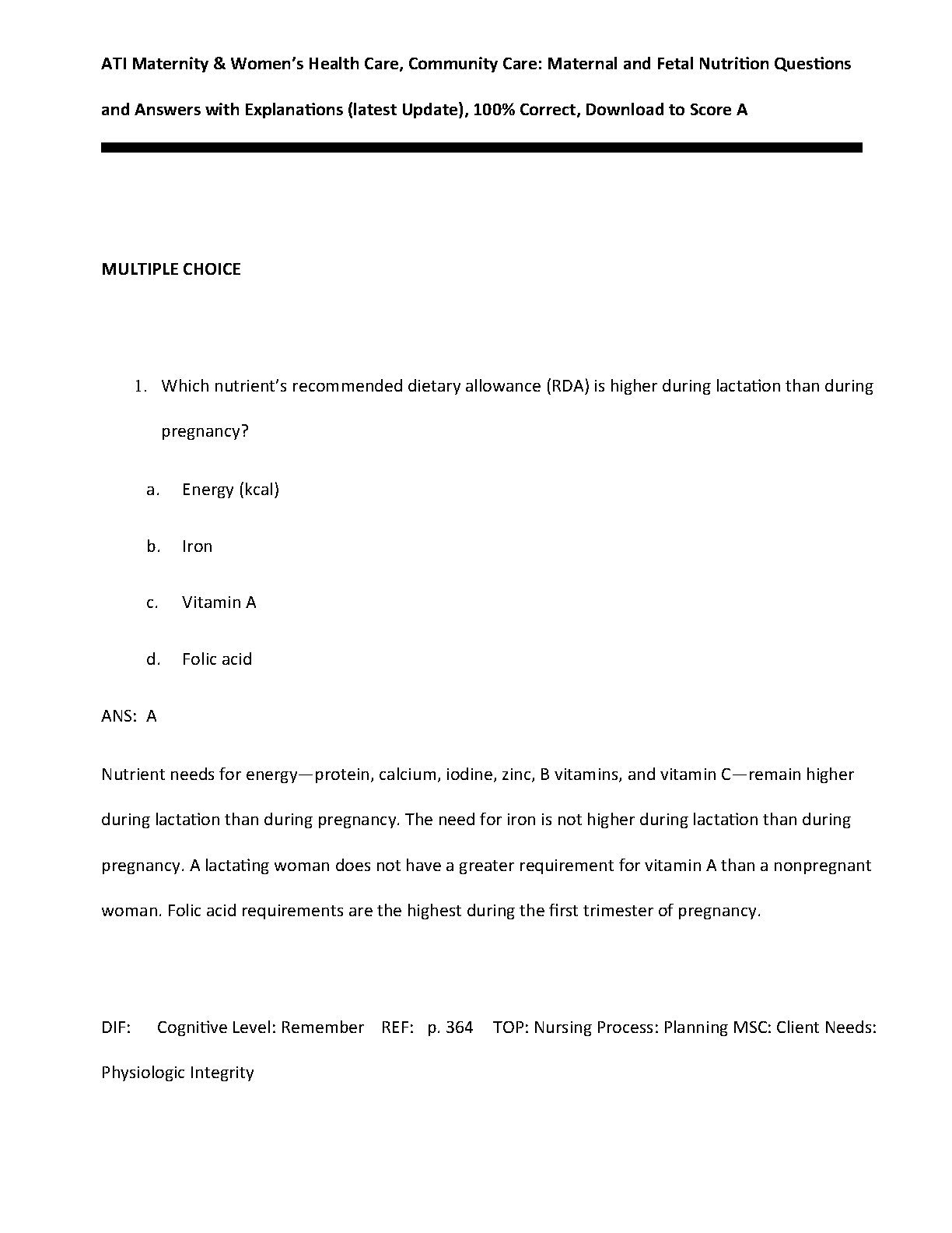 ATI Maternity & Women’s Health Care, Community Care: Maternal and Fetal Nutrition Questions and Answers with Explanations (latest Update), 100% Correct, GRADED A. DOWNLOAD on www.hackedexams.com INSTANTLY.