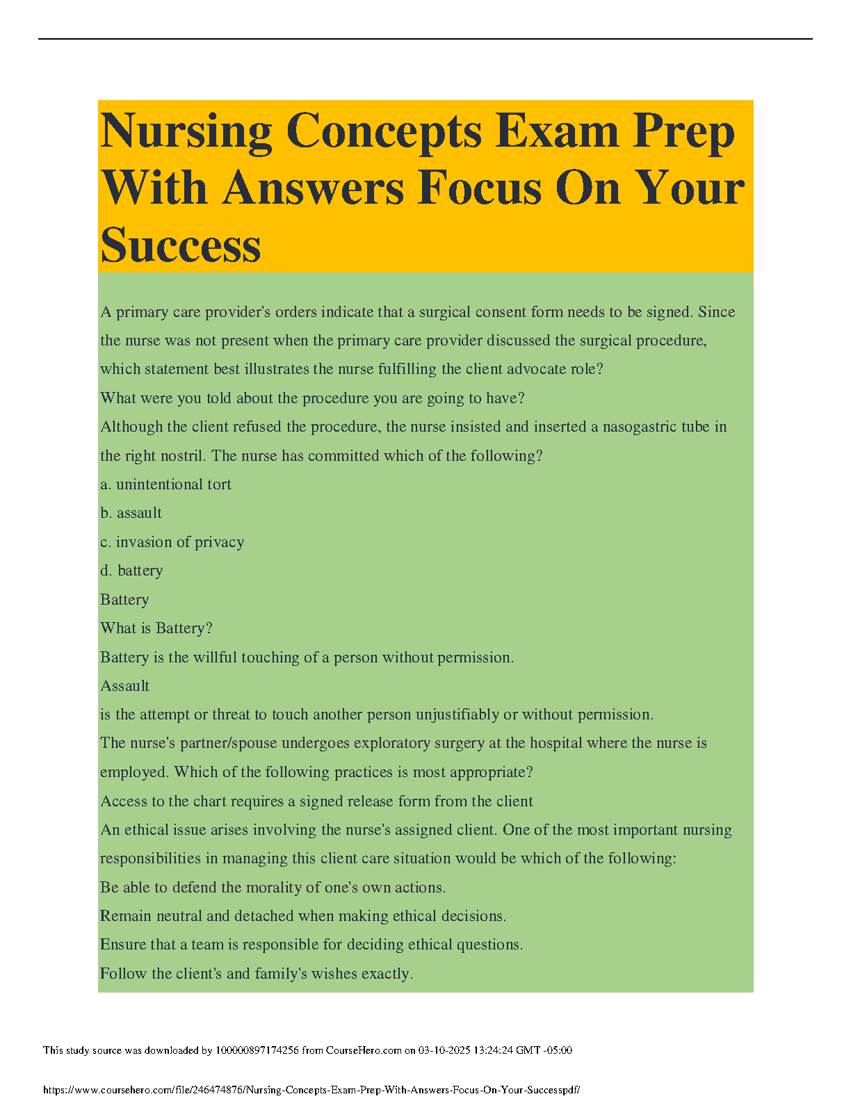 Nursing Concepts Exam Prep With Answers: Focus on Your Success - 2024/2025 Edition