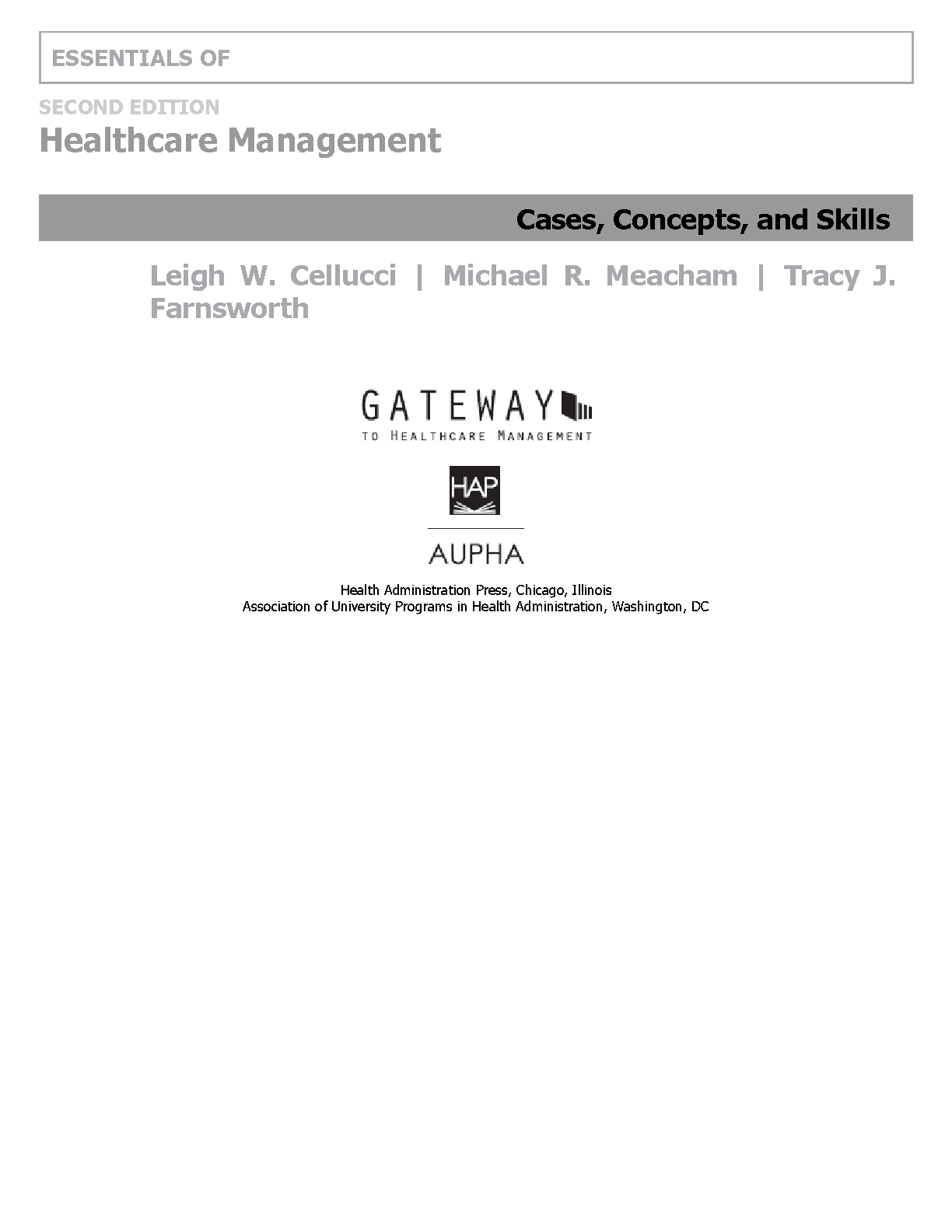 Essentials of Healthcare Management, Second Edition, by Leigh W. Cellucci, Michael R. Meacham, and Tracy J. Farnsworth