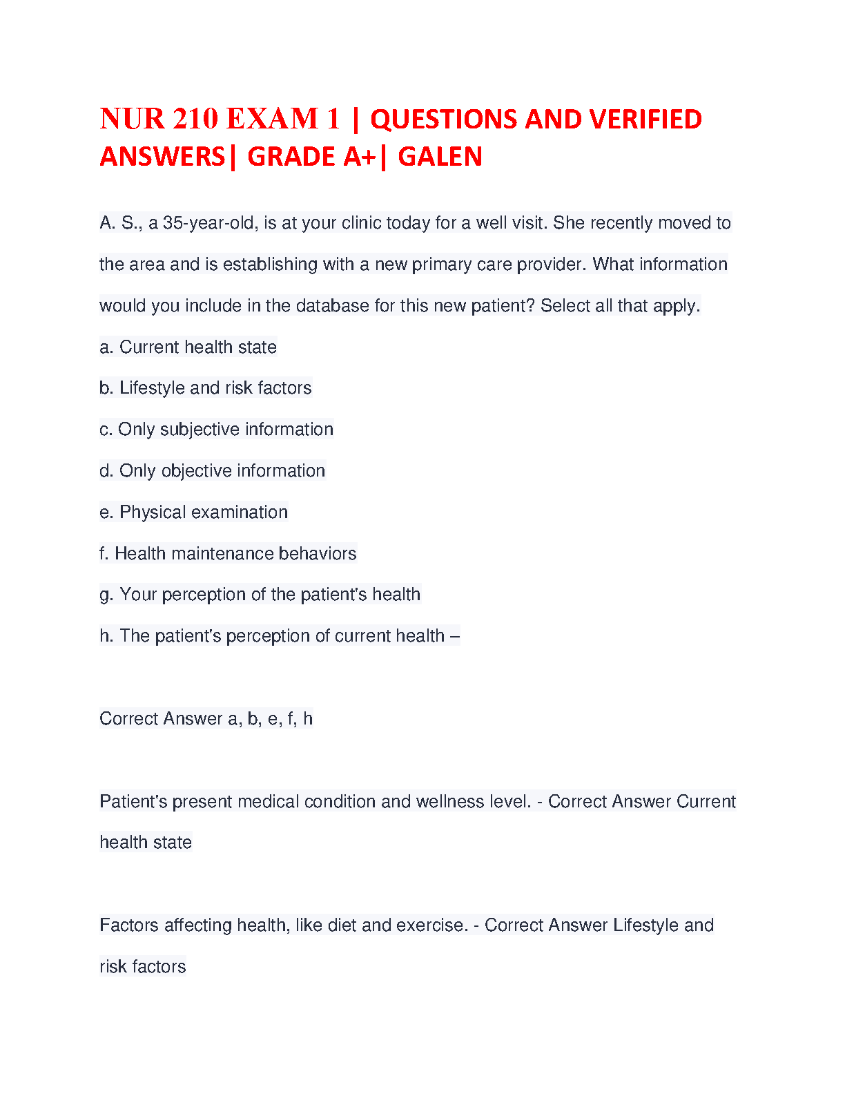 NUR 210 Exam 1 Questions and Verified Answers: A Comprehensive Guide for Students (2024/2025 Edition)