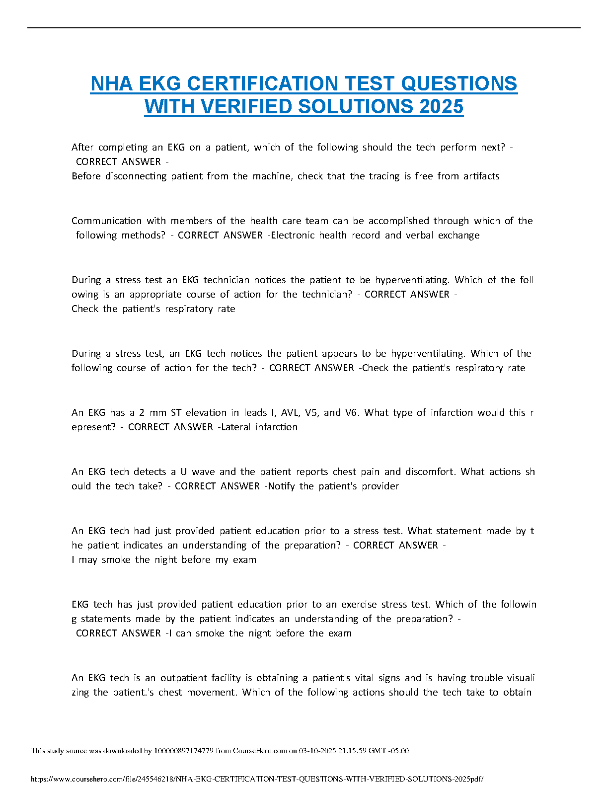 NHA EKG Certification Test Questions with Verified Solutions 2025 by NHA