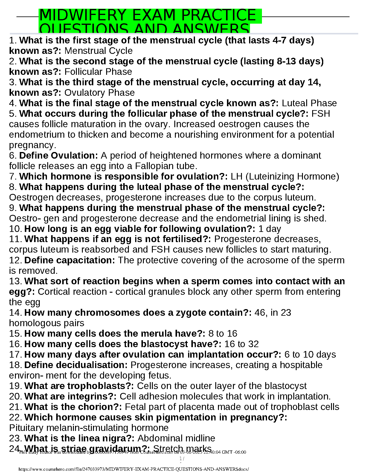 Midwifery Exam Practice Questions and Answers - Complete Guide for 2024/2025