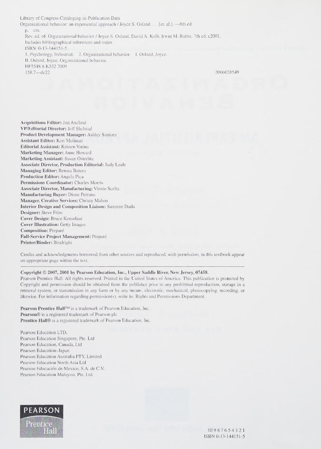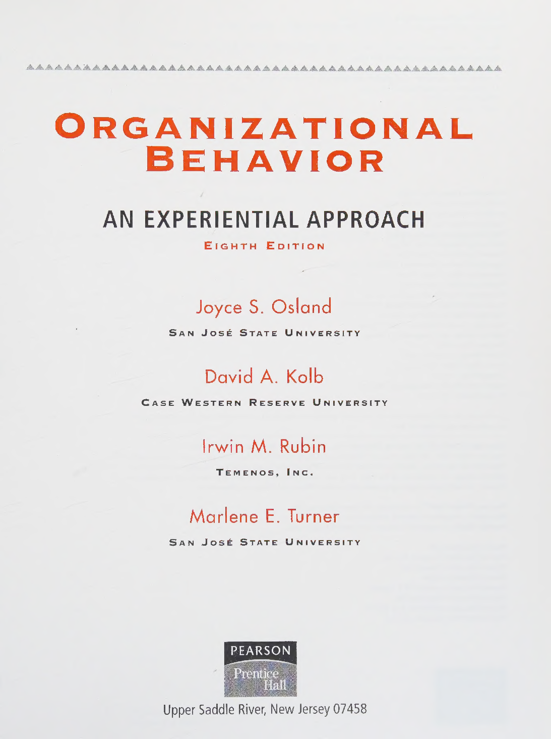Organizational Behavior: An Experiential Approach, Eighth Edition, by Joyce S. Osland, David A. Kolb, Irwin M. Rubin, and Marlene E. Turner