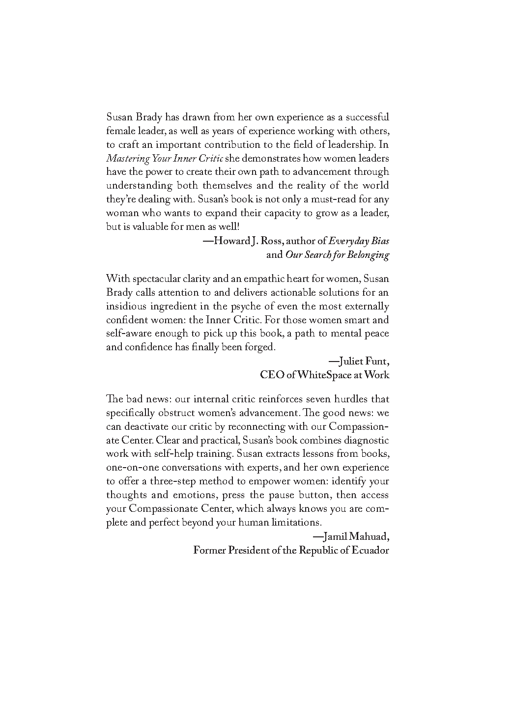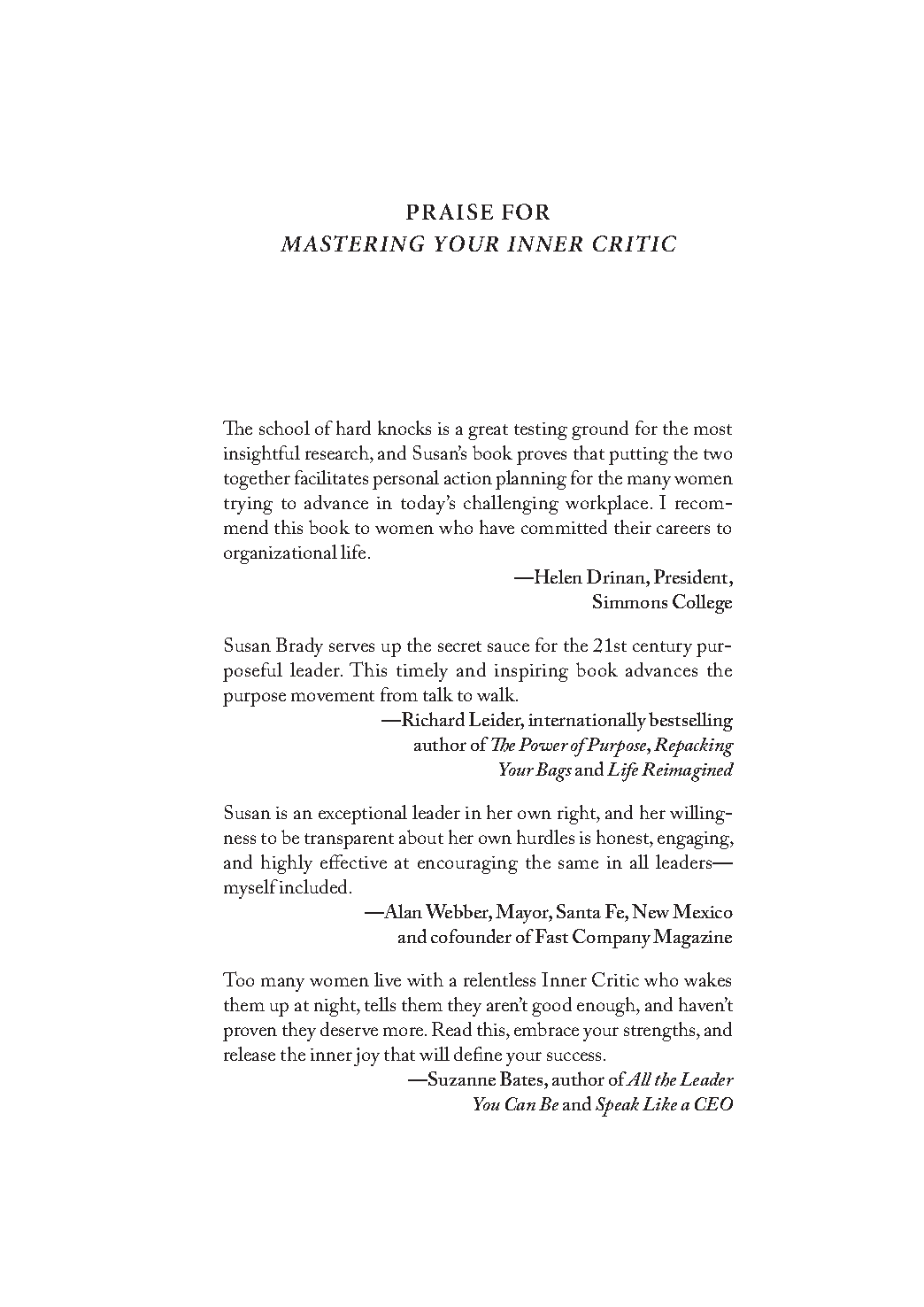 Mastering Your Inner Critic and 7 Other High Hurdles to Advancement by Susan Mackenty Brady