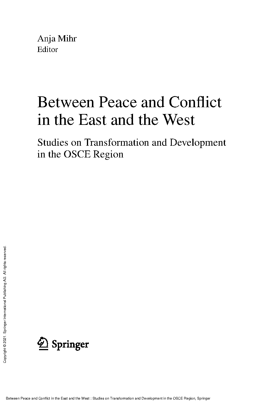 Between Peace and Conflict in the East and the West: Studies on Transformation and Development in the OSCE Region, edited by Anja Mihr