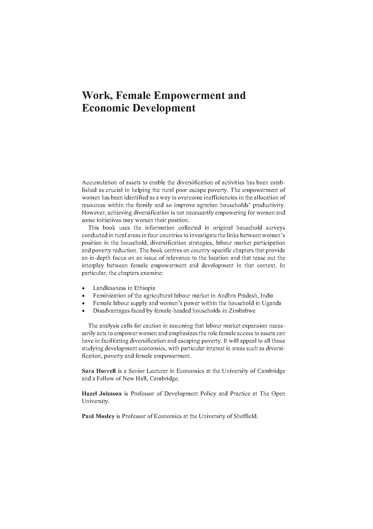 Work, Female Empowerment and Economic Development by Sara Horrell, Hazel Johnson, Paul Mosley, Supriya Garikipati, June Rock, and Arjan Verschoor