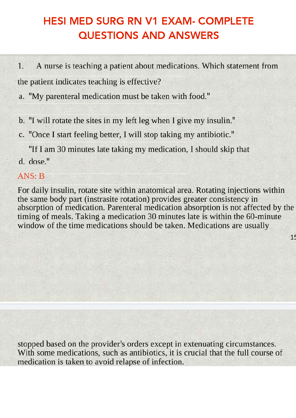 Ace your HESI Med Surg RN V1 exam with this comprehensive question and answer bank. This resource provides detailed explanations to help you understand key concepts and avoid resits. Ideal for 2024/2025 academic year.