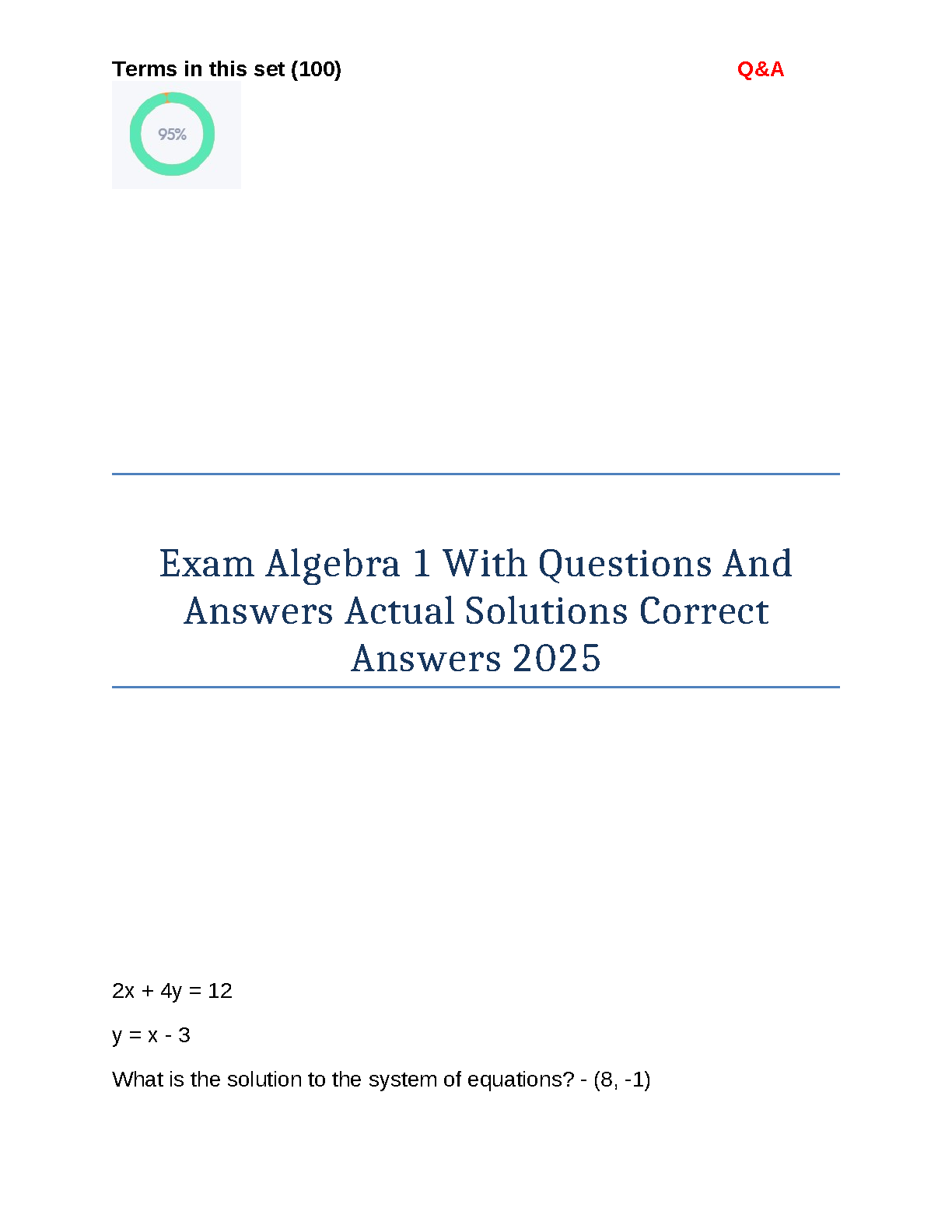 Ace your Algebra 1 exam with this comprehensive guide featuring questions, answers, and detailed solutions for the 2025 edition. Prepare effectively and avoid resits.