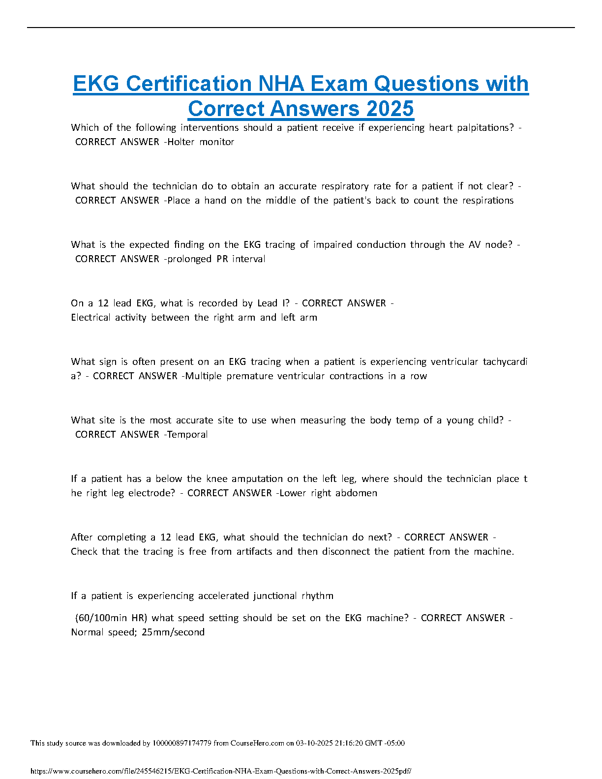 2025 EKG Certification NHA Exam Questions with Correct Answers by CourseHero.com