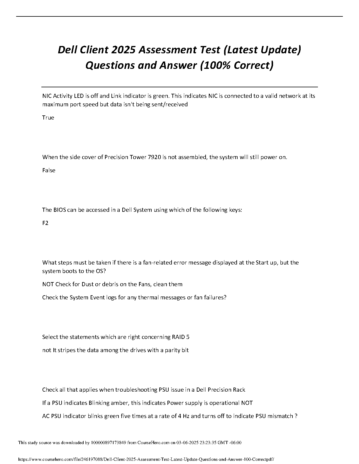 Dell Client 2025 Assessment Test (Latest Update) Questions and Answers by [Author Name not available]