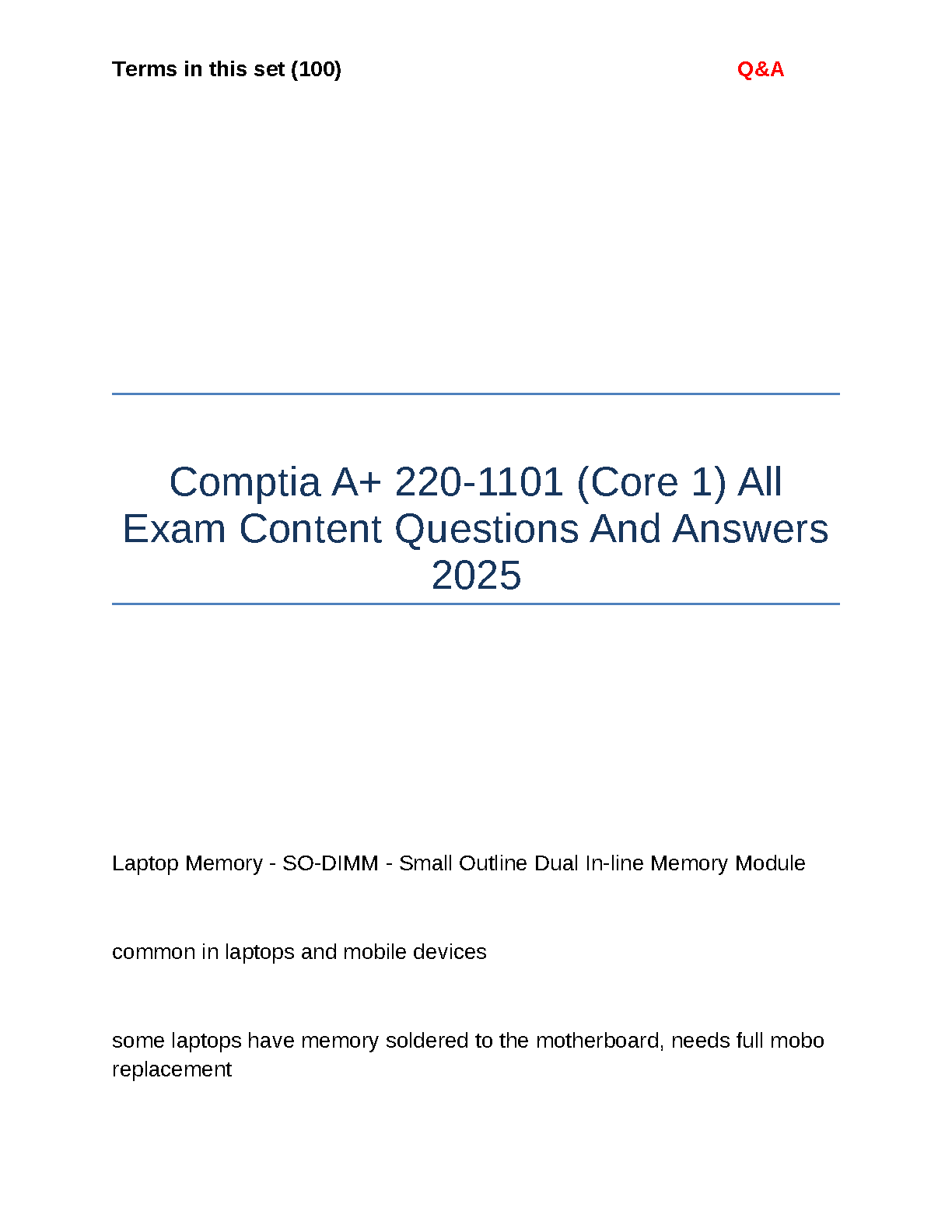 CompTIA A+ 220-1101 (Core 1) Exam Questions and Answers 2025 Edition by CompTIA