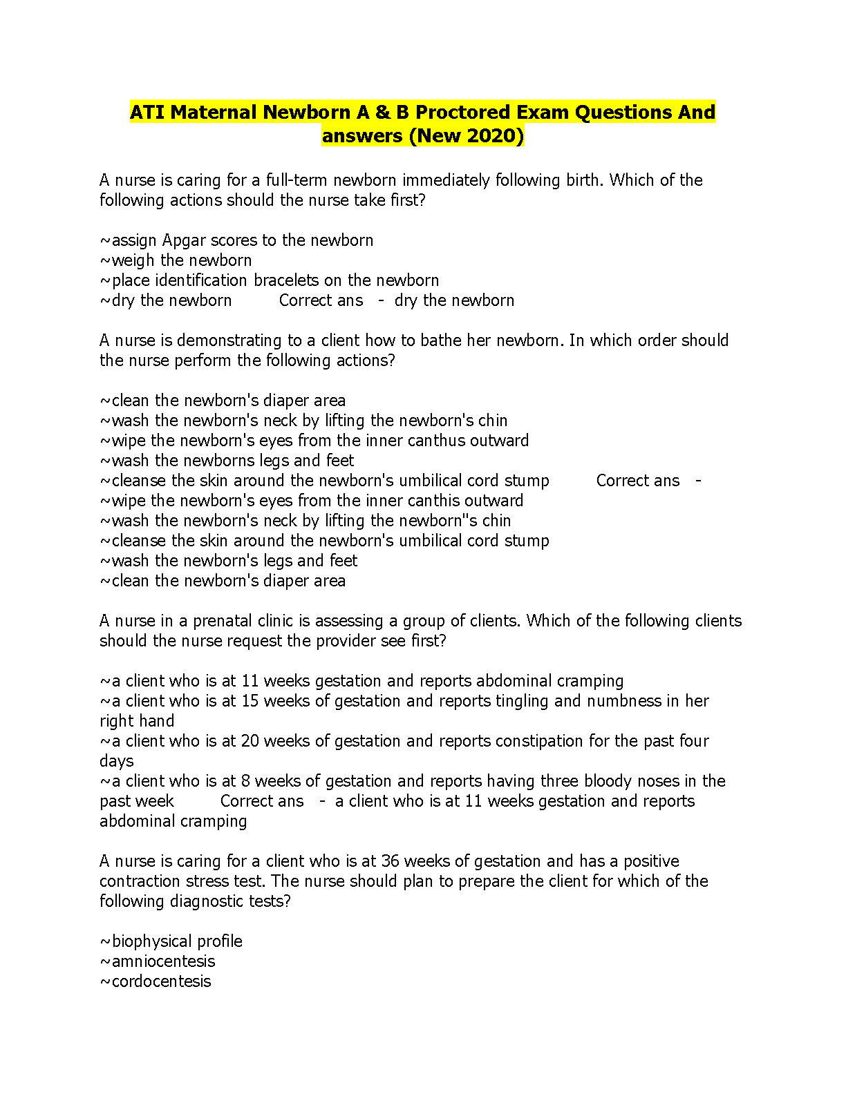 ATI Maternal Newborn A & B Proctored Exam Questions And answers RECENTLY UPDATED SOLUTION 2023. DOWNLOAD on www.hackedexams.com INSTANTLY.