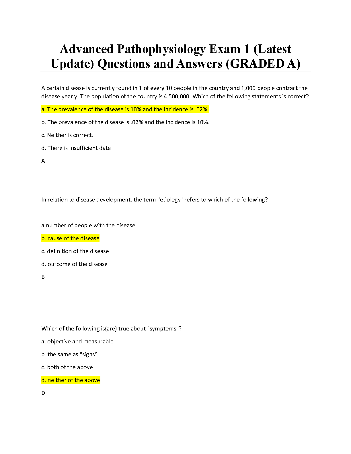 Ace your Advanced Pathophysiology Exam with this comprehensive question and answer guide. This resource provides a graded set of practice questions mirroring the exam format, helping students master key concepts and achieve first-attempt success. Perfect for 2024/2025 academic year.