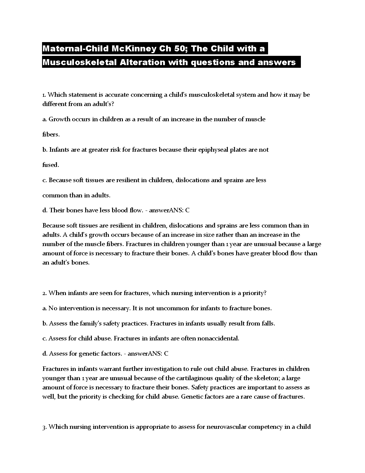 Maternal-Child McKinney Ch 50; The Child with a Musculoskeletal Alteration with questions and answers BEST RATED SOLUTION 2023/2024. DOWNLOAD on www.hackedexams.com INSTANTLY.