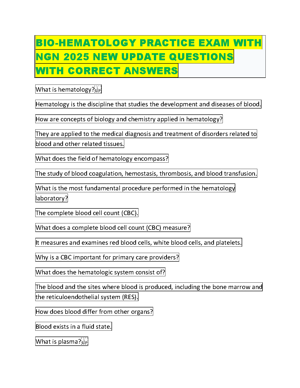 Bio-Hematology Practice Exam with NGN 2025 New Update Questions and Answers by Anonymous Author