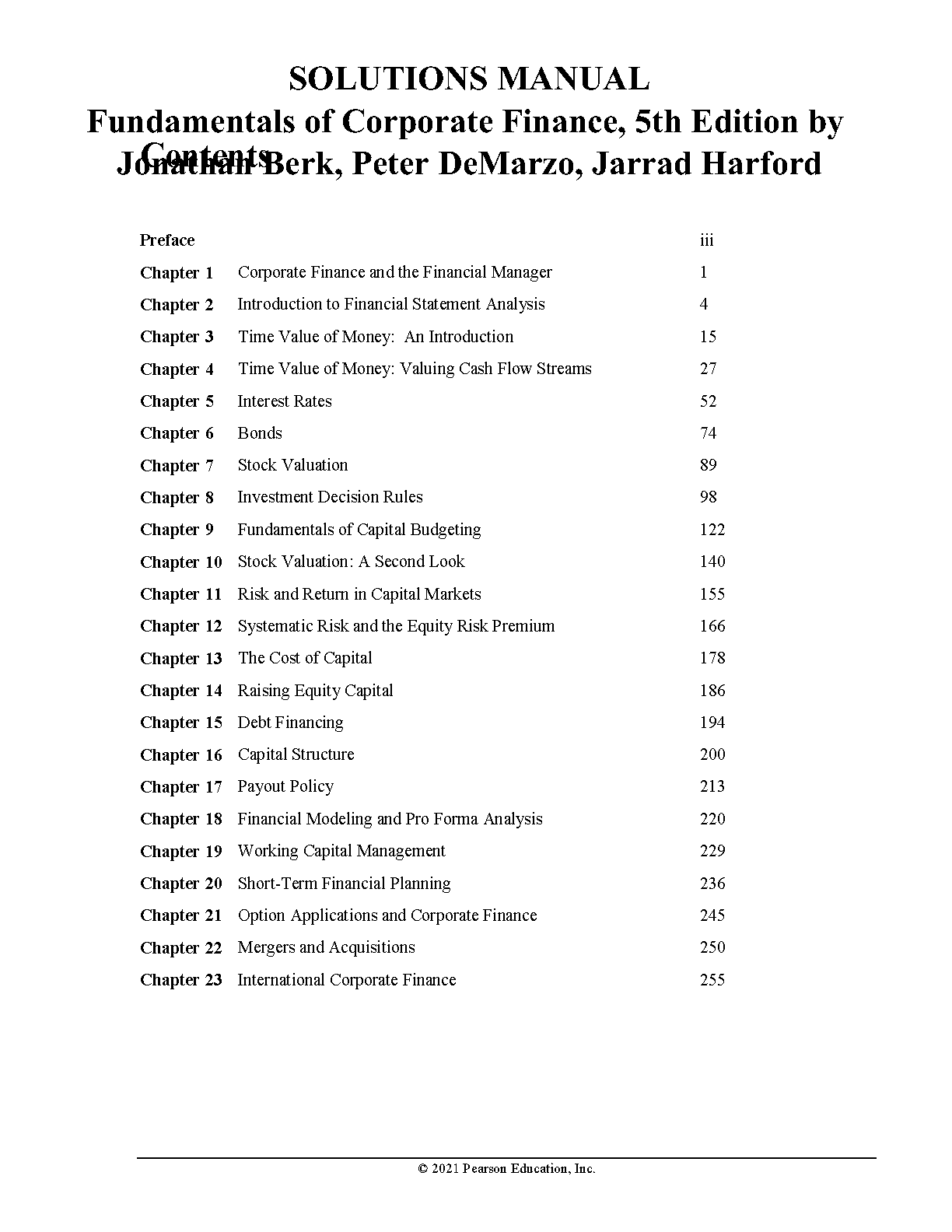 Ace your corporate finance exams with this comprehensive solutions manual for the 5th edition of Berk, DeMarzo, and Harford's Fundamentals of Corporate Finance. This resource provides detailed explanations and step-by-step solutions to help you understand core concepts and achieve exam success on your first try.
