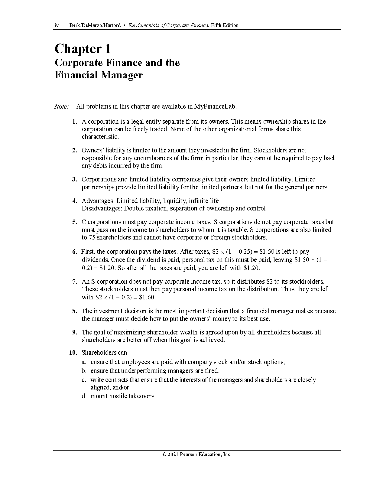 Fundamentals of Corporate Finance 5th Edition Solutions Manual by Berk, DeMarzo, and Harford