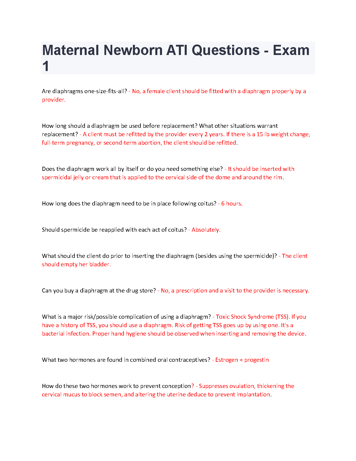 Maternal Newborn ATI Questions - Exam 1 RECENTLY UPDATED AND GRADED A+