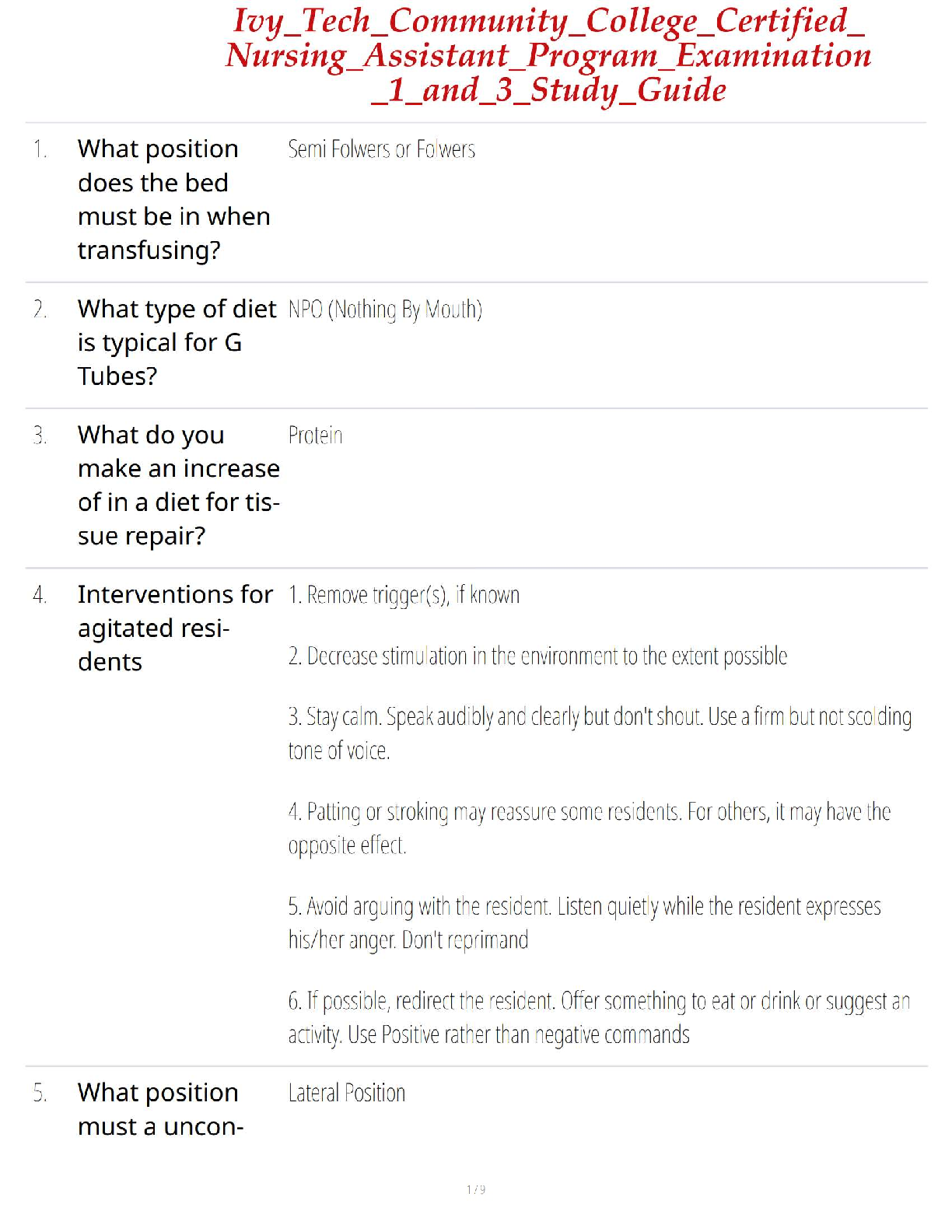 Prepare for the Ivy Tech Community College Certified Nursing Assistant Program Examination with this comprehensive 2024-2025 study guide. Designed to help students pass their exams on the first try and avoid resits, this resource covers key concepts and provides practice questions to ensure exam readiness.