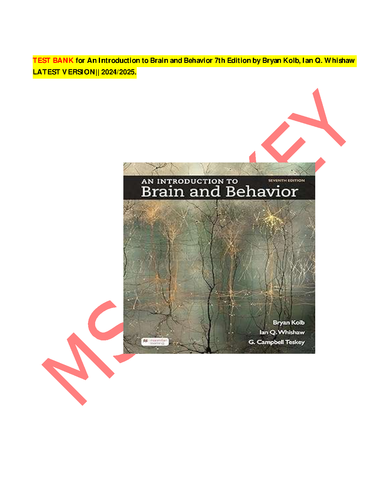 Ace your exams with this latest 2024/2025 edition test bank for An Introduction to Brain and Behavior. This comprehensive resource, authored by Bryan Kolb, Ian Q. Whishaw, and G. Campbell Teskey, is designed to help students master the material and achieve success on their first attempt, eliminating the need for resits.