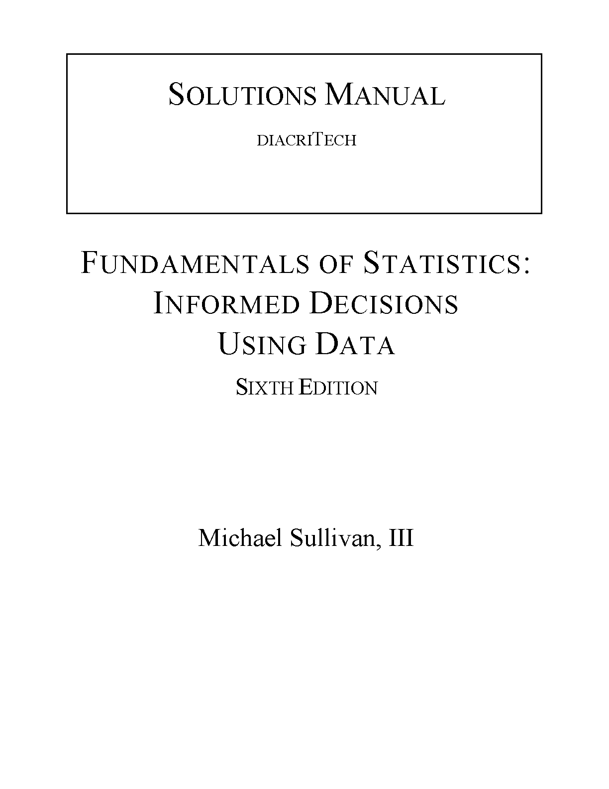 Solutions Manual for Fundamentals of Statistics: Informed Decisions Using Data, Sixth Edition by Michael Sullivan III