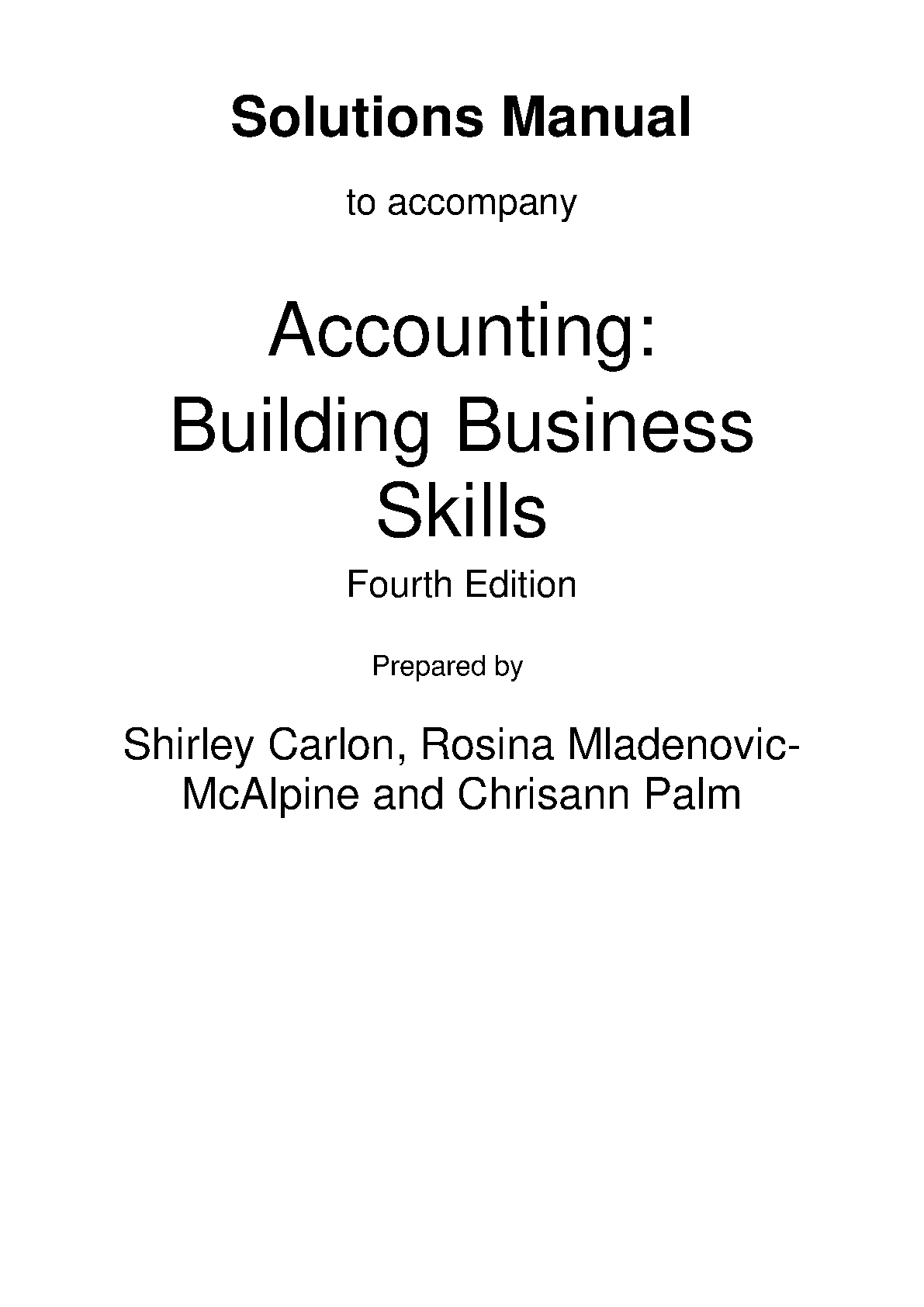 Solutions Manual to Accounting: Building Business Skills, Fourth Edition by Shirley Carlon, Rosina Mladenovic-McAlpine, and Chrisann Palm