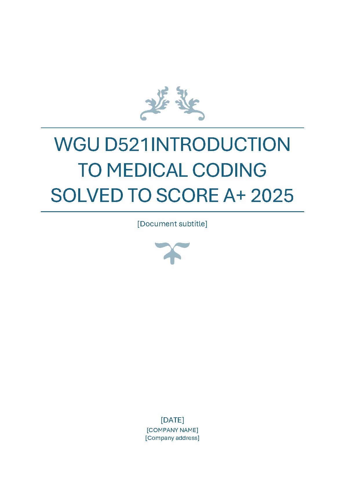 Ace your WGU D521 Introduction to Medical Coding exam with this comprehensive 2025 guide. Designed to help students pass their exams on the first attempt and avoid costly resits, this resource provides solutions and strategies for achieving top marks.