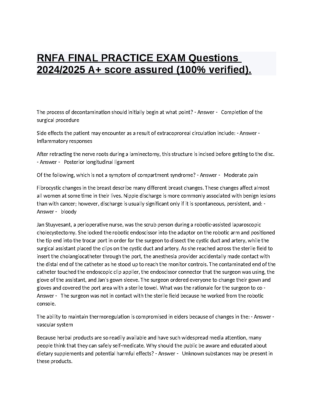 RNFA Final Practice Exam Questions 2024/2025: A+ Score Assured (100% Verified) by [Author's Name - Needs to be found online]
