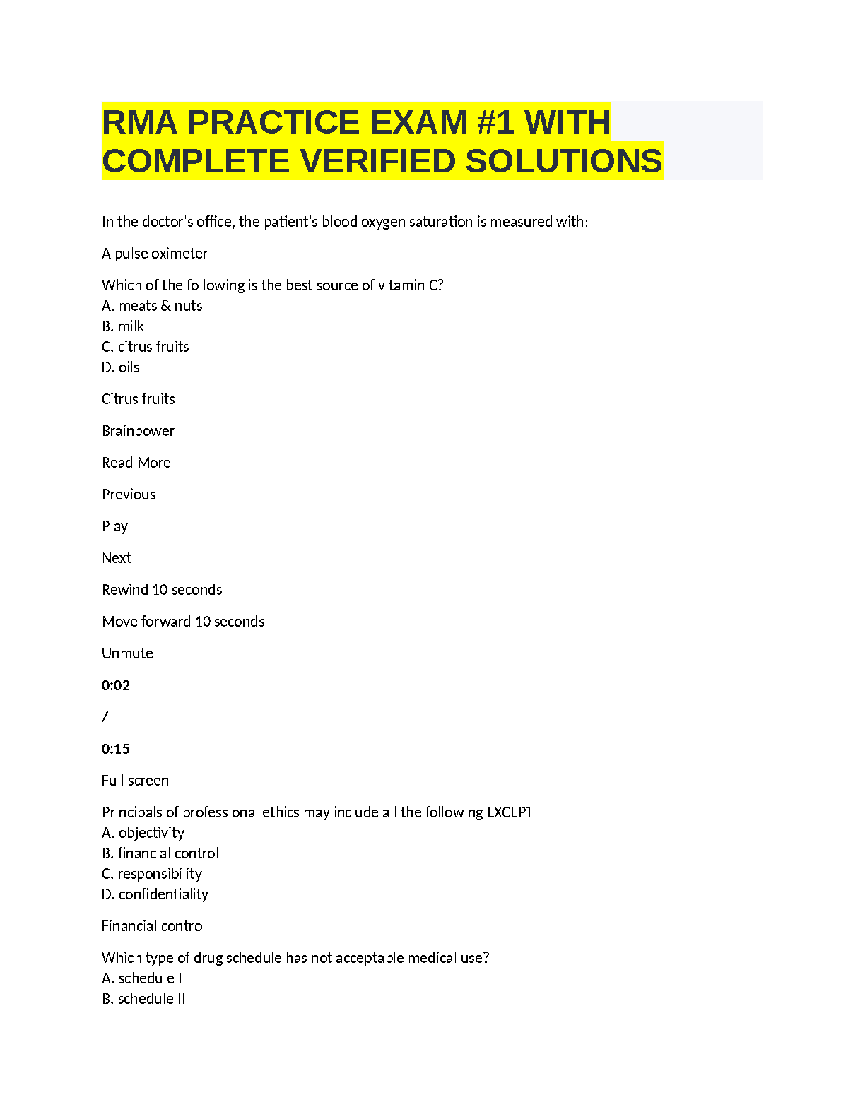 RMA Practice Exam #1 with Complete Verified Solutions: A 2024-2025 Guide for First-Time Passers
